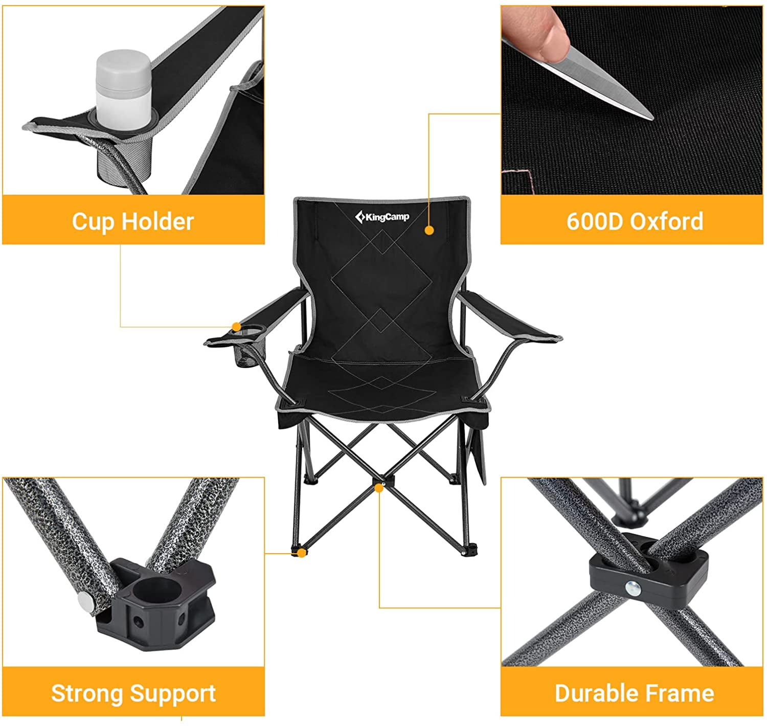 KingCamp Folding Camping Chair – 220 lbs Lightweight Build Portable Lawn Chairs, Black, Ideal for Space-Saving Outdoor Trips
