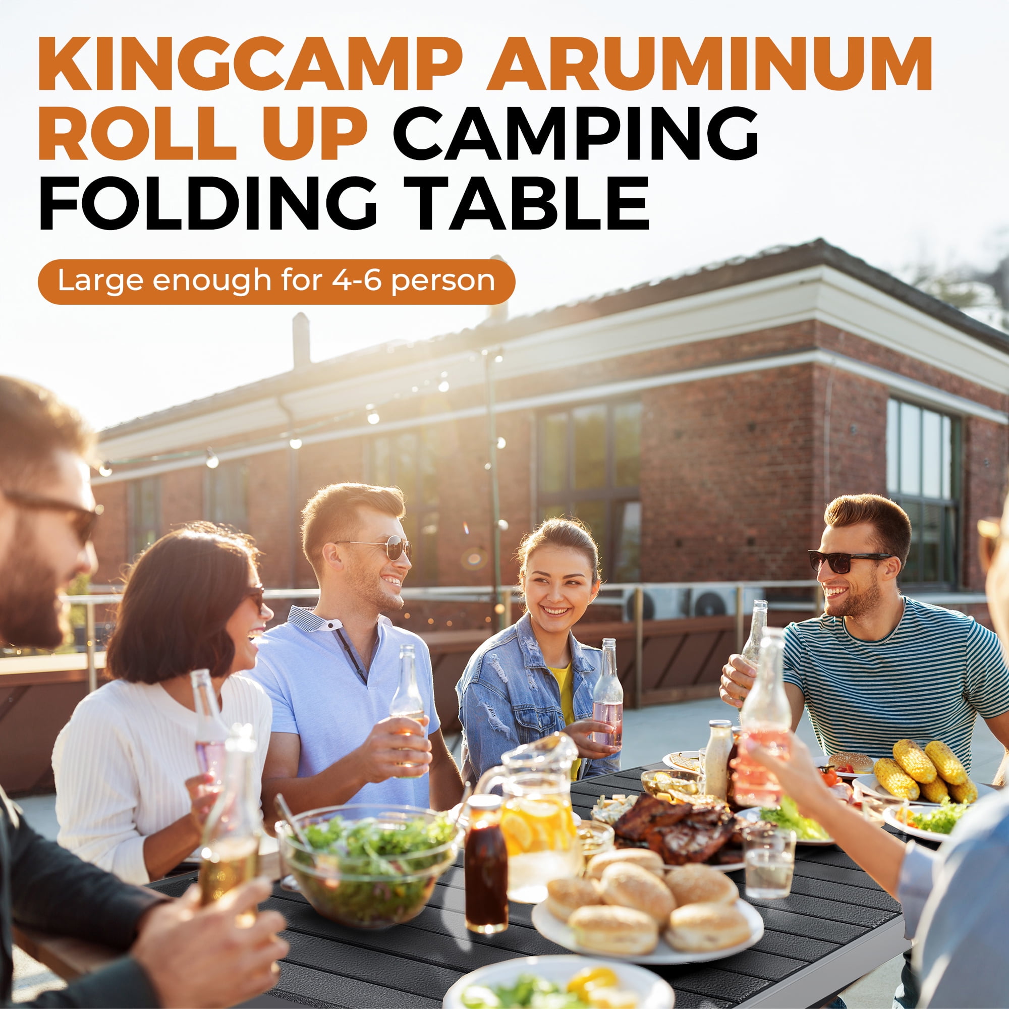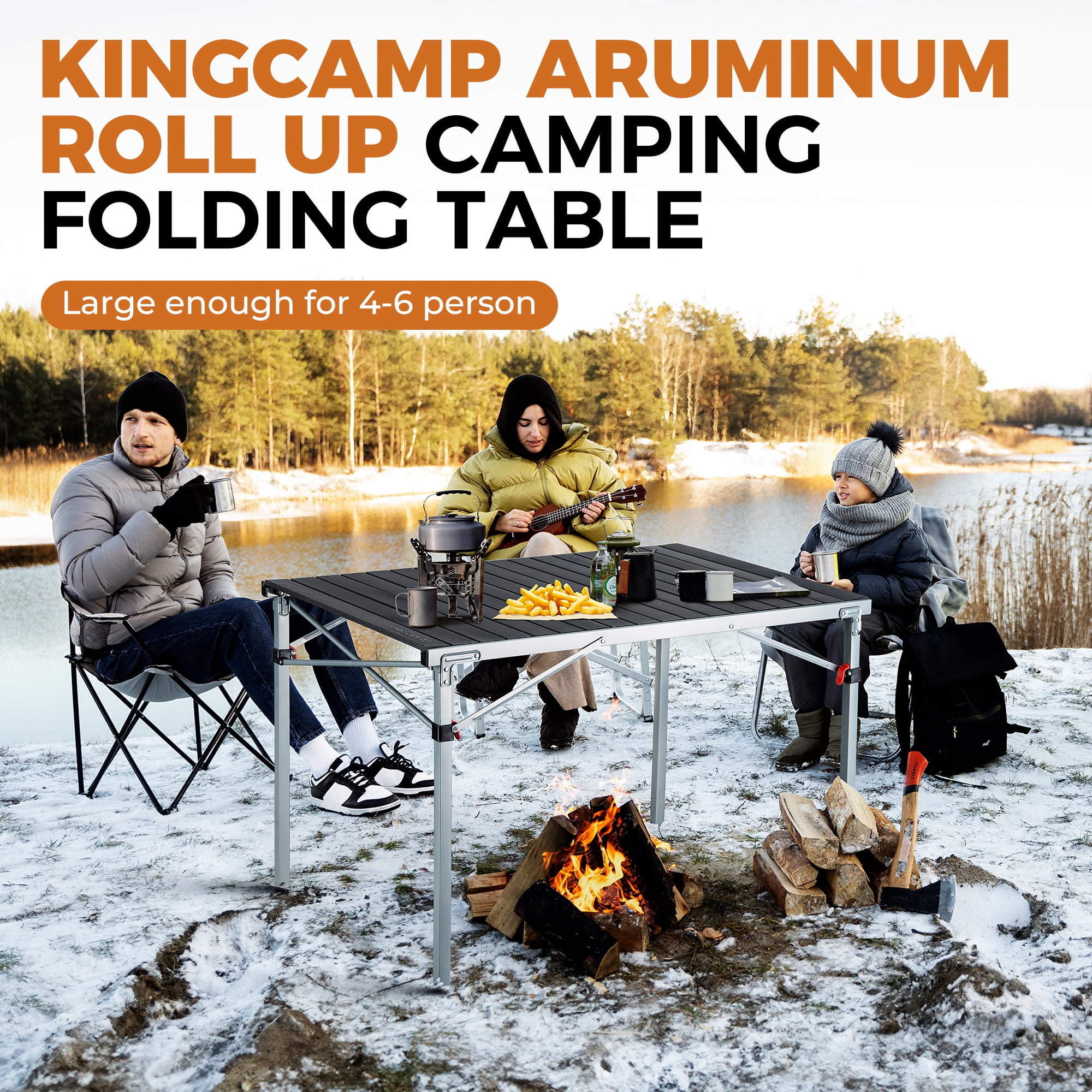 KingCamp Folding Heavy-Duty Camping Table Aluminum Roll up Table for 4-6 Person for Outdoor & Indoors 42.1″ × 27.6 ” Silverblack
