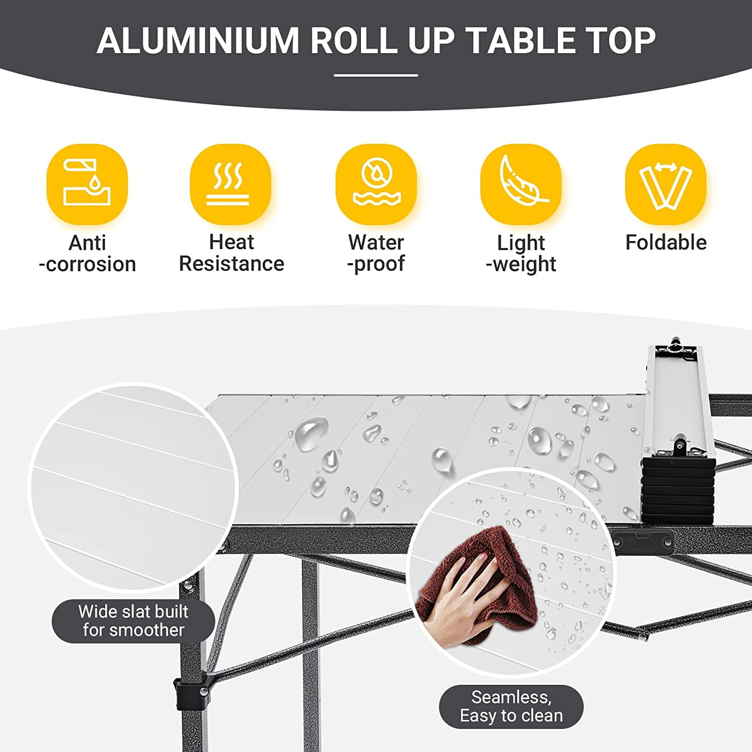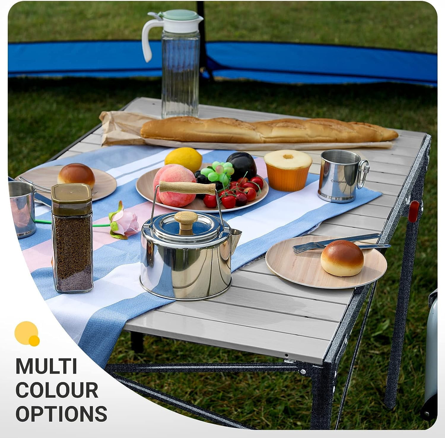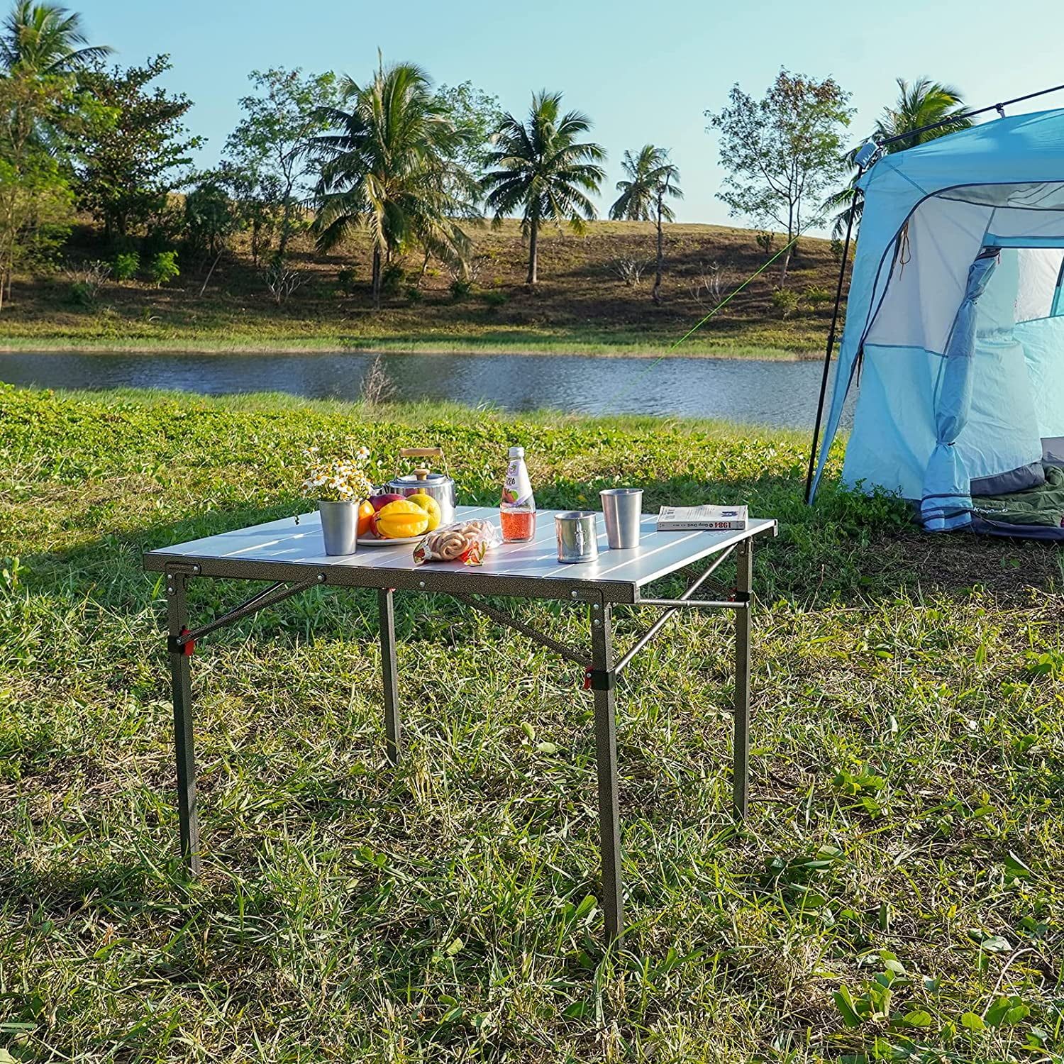 【Portable Lightweight Camping Table】The camping tables that fold up lightweight only 13.1 lbs and after folded the size is 41.3×8.6×5.9 inches, which make it portable and light enough to be carried around your trip, fits most car trunks. The carry bag for folding camping table will be easy to take with the handle. 【Durable Aluminum Camping Table】This folding table camping is made of thicker aluminum alloy and anodized treatment, which is rust free, corrosion-resistant,easy to clean. The aluminum grill table adopts metal material contact point and triangular steel structure design to ensure stable use. 【Multifunctional Folding Table】King Camp portable camping table has multifunctional uses, both indoor and outdoor, including picnic table, beach table and camping kitchen table, which are used for camping, beach, tourism, sports events,RV outside and fishing. 【Easy To Assemble Roll Up Camping Table】No tools are required for assembly of the portable folding picnic table,you can set up it in seconds.kingcamp folding camping table top and aluminum legs are easy to set up or foldable when you use or store, pack it with compact carrying bag, save much space for camping tailgating or backyard use. 【Family Size Folding Camping Table】: The outdoor folding camping table spacious desktop area (40.1 × 27.6 inches) is large enough for 2-4 people,27.6 inches height and triangle structure stent design of camping table can give you enough and comfortable space to put your legs.