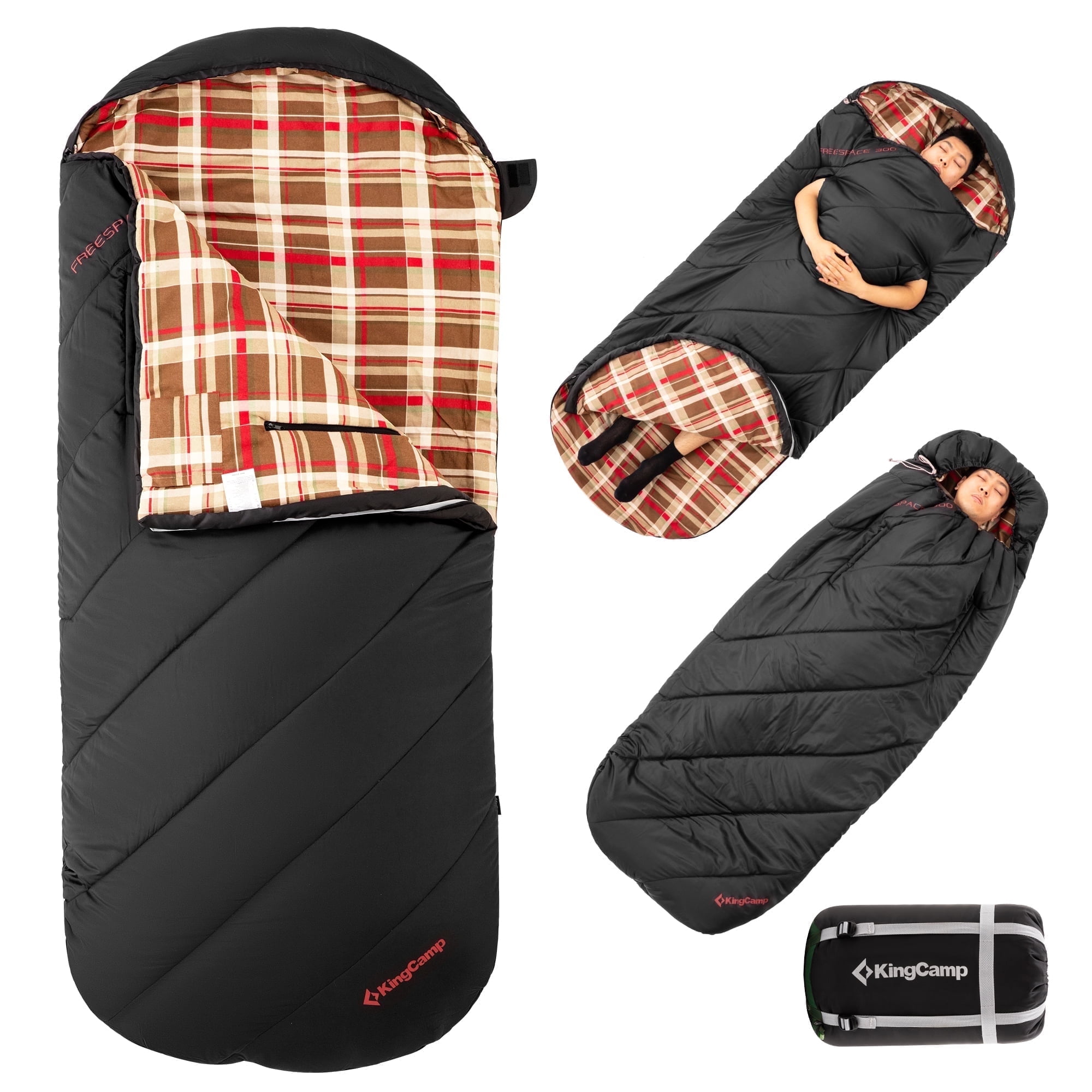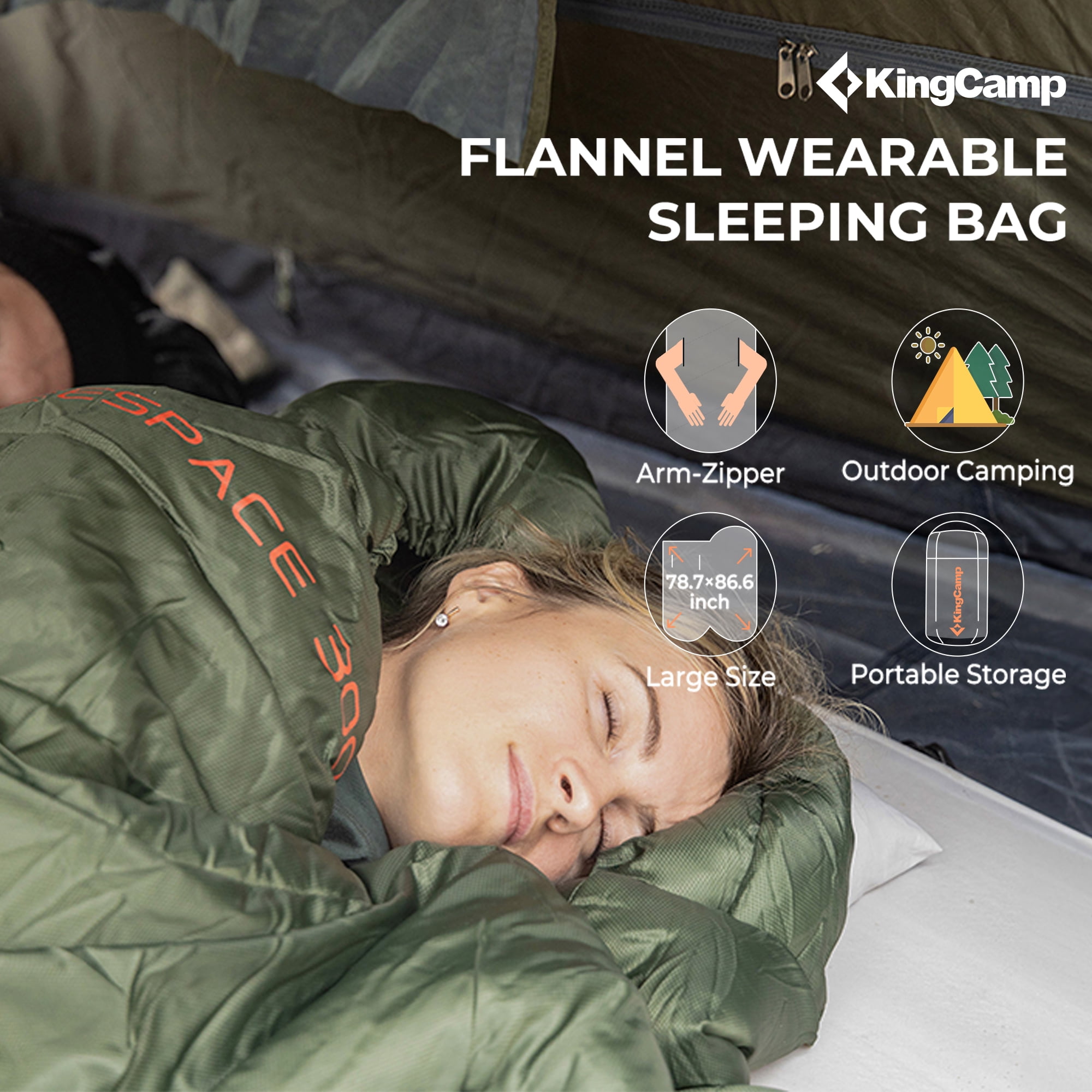 KingCamp Oversized Wearable Cotton Flannel Sleeping Bag – Ideal for Camping, Hiking & Travel, Temperature Rating 9°F-44°F (Black)