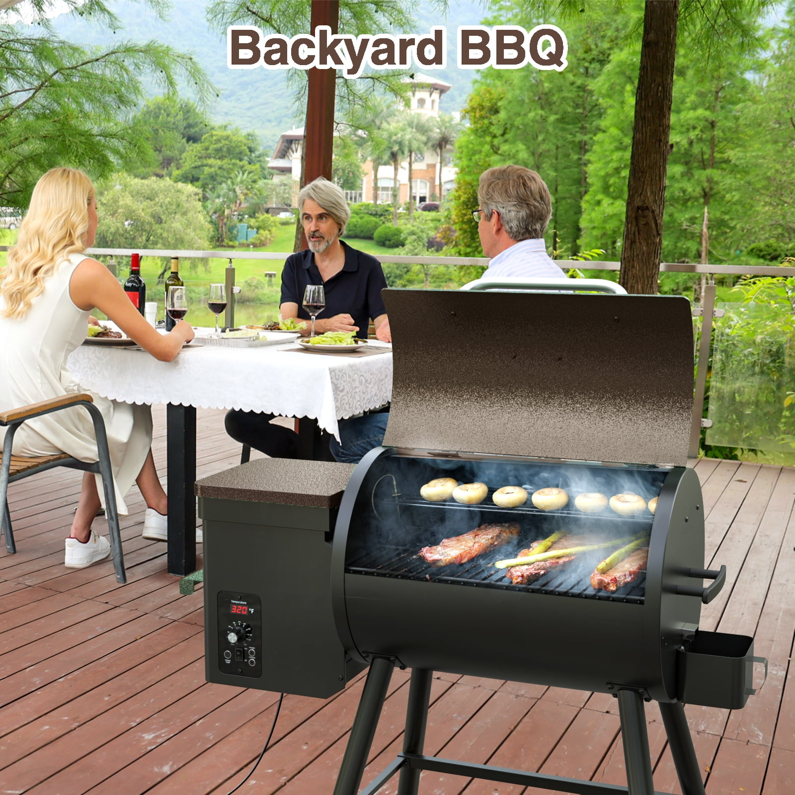 KingChii 456 SQ.IN Wood Pellet Grill Smoker with Auto Temperature Control for Outdoor RV BBQ in Bronze