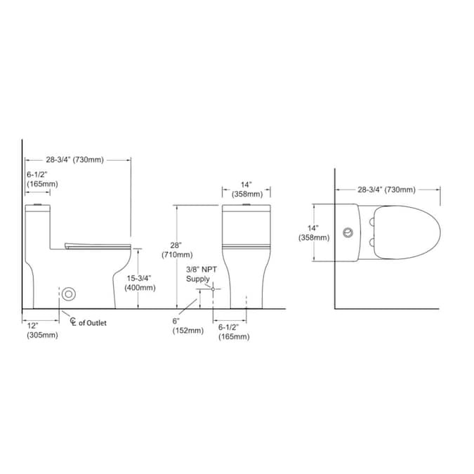 - Flush Lever Location: Top center