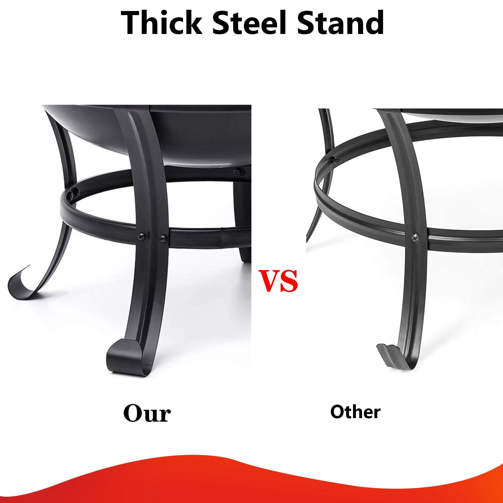 Round outdoor fire pit set with mesh spark screen,wood fire poker Includes domed mesh screen with ring handle for added protection against flying sparks Strong steel framefeatureshigh-temperature finish that resists rusting, blistering Adds warmth and ambience to a backyard or concrete patio Portable fire pit ideal for backyard use, camping, tailgates, and more Some assembly required using common household tools For outdoor use only; do not use on wooden decks Fire bowl intended to burn wood logs only Brand: KINGSO Material: Alloy Steel Item Dimensions LxWxH: 22 x 22 x 20 inches / 26 x 26 x 18.5 inches Item Weight: 22 inch : 12.27 pounds / 26 inch: 6.3 pounds Assembly Required: Yes Please make sure the fire is out before storing it indoors. DO NOT RECOMMEND TO BE STORED OUTDOORS AFTER USE. Keep kids and pets away from the fire pit and don’t touch the hot fire bowl with your hands !!! If you and your families have a BBQ with the fire pit, please prepare a special BBQ shelf. The log grate can ‘t be used as BBQ shelf !!! It is a normal phenomenon that the paint of the fire pit peels off after the fire pit is used several times. In order to prolong the service life of the fire pit, please don’t put ice or water into the fire bowl. This will lead to the rust of the fire bowl after a long time.