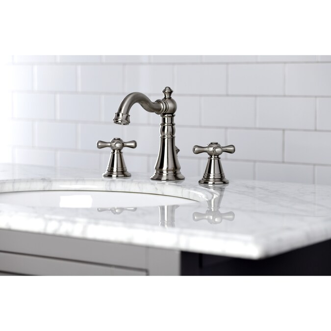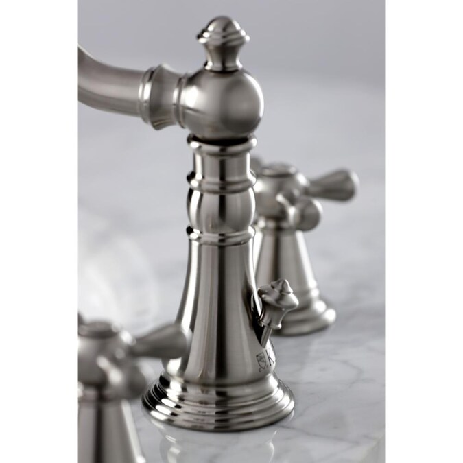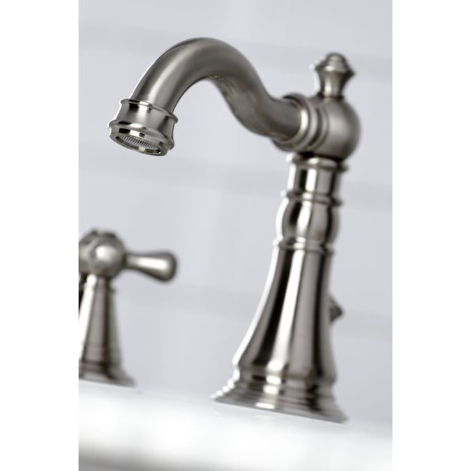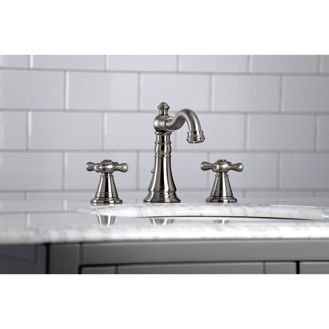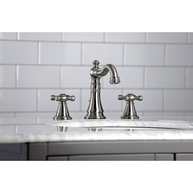 This faucet is perfect for those seeking inspiration from the exquisite artistry and architecture of the traditional Victorian era. Ideal for more spacious bathrooms, widespread faucets are more spread apart and feature a 3-hole installation. The American Classic 8 in. widespread bathroom faucet with pop-up drain and its featured sturdy brass construction and premium brushed nickel finish are guaranteed to glamorize your home’s traditional ensemble for years to come. This faucet will surely personify any homeowner’s refined tastes with its regal qualities. A matching finish drain is also included.