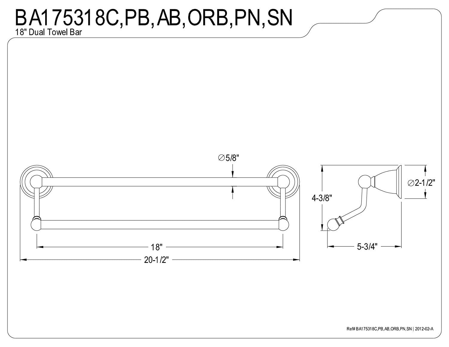 Descriptions:Heritage Collection, Fabricated from solid brass material for durability and reliability, Premium color finish resist tarnishing and corrosion, Easy to install, Matching collection available, One Year Limited Warranty to the original consumer to be free from defects in material and finish. Features: Polished Chrome Finish 18″ Dual Towel Bar High Quality Brass Construction Design to hold up to 20 Lbs Coordinates Perfectly With Heritage Collection Brass Bathroom Accessories