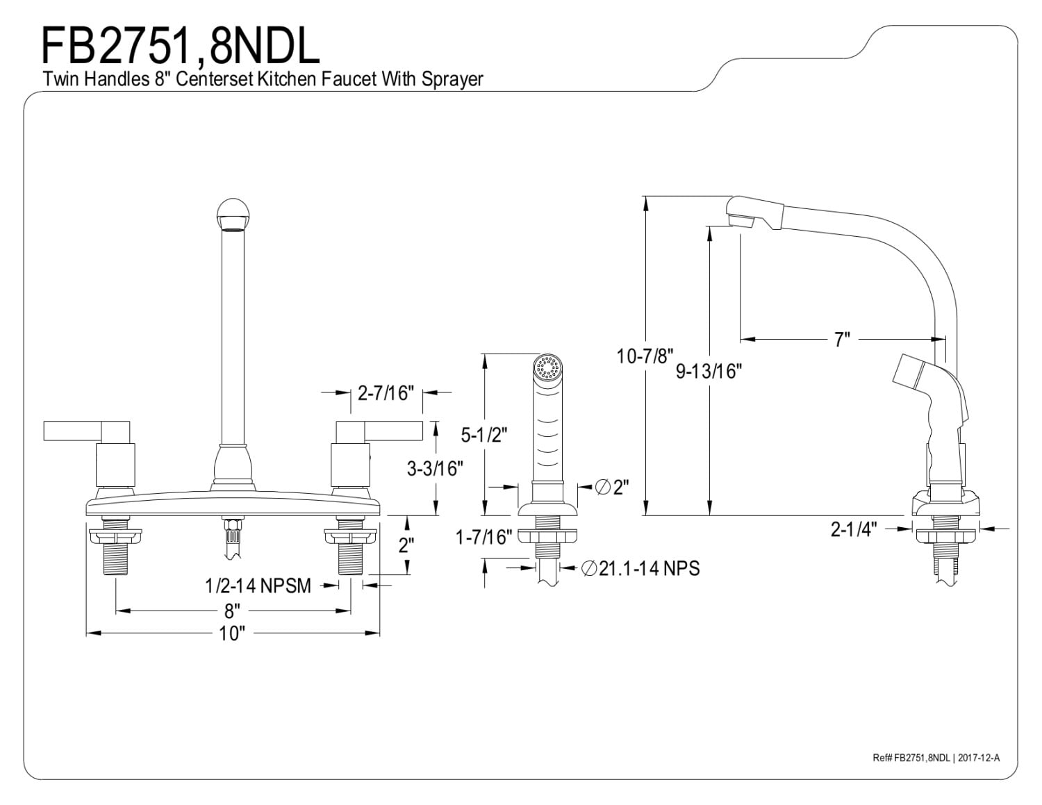 Solid Brass, Zinc Alloy and ABS Construction Durable Washerless Cartridge Deck Mount 8″ Centerset 4-Hole Installation 1.8 GPM/6.8 LPM Spout Flow Rate at 60 PSI Standard 1/2″ IPS Connection 9-13/16″ Spout Clearance 7″ Spout Reach Includes Side Sprayer Lever Handles Meet ADA Guidelines Corrosion-Resistant Finish