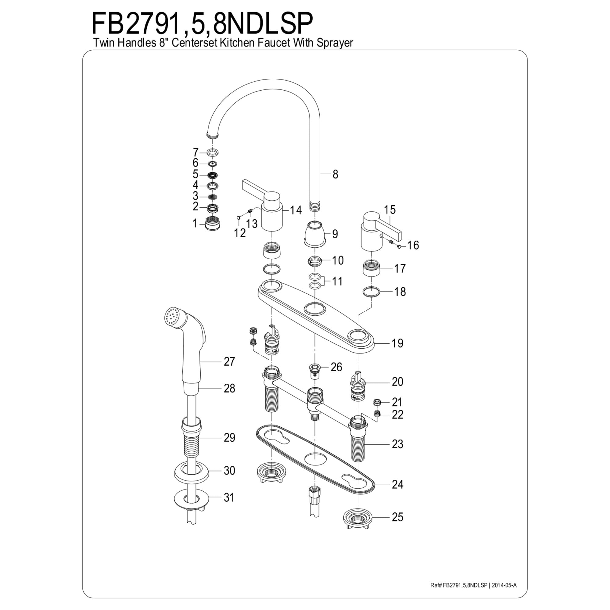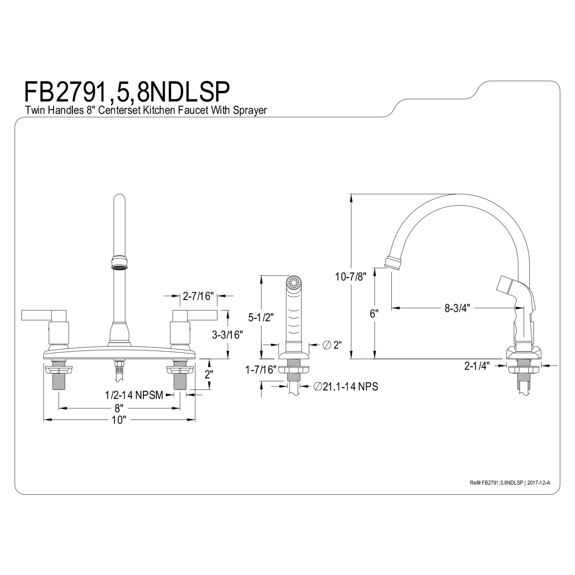 Kingston FB2798NDLSP NuvoFusion Two-Handle 4-Hole 8″ Centerset Kitchen Faucet with Side Sprayer in Brushed Nickel