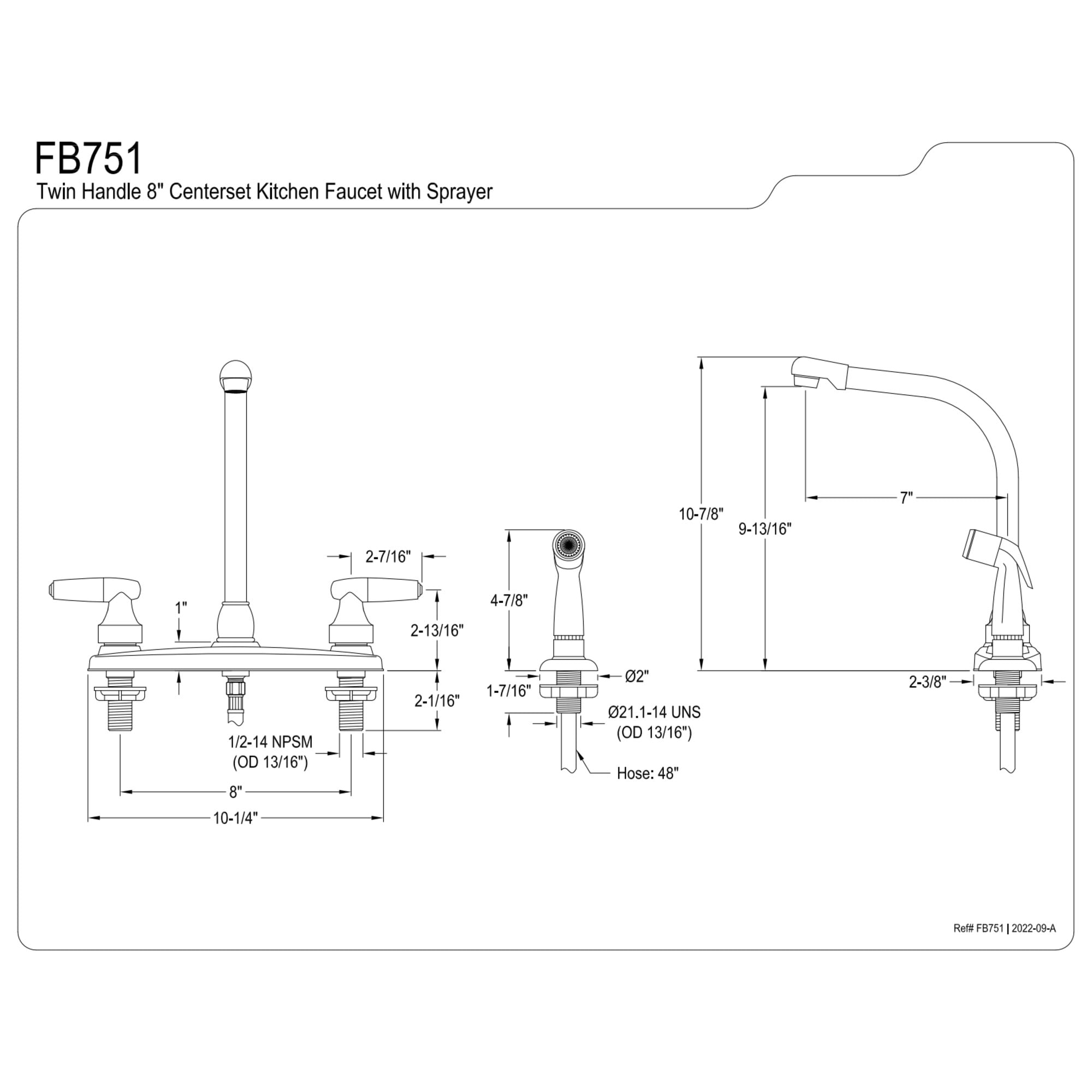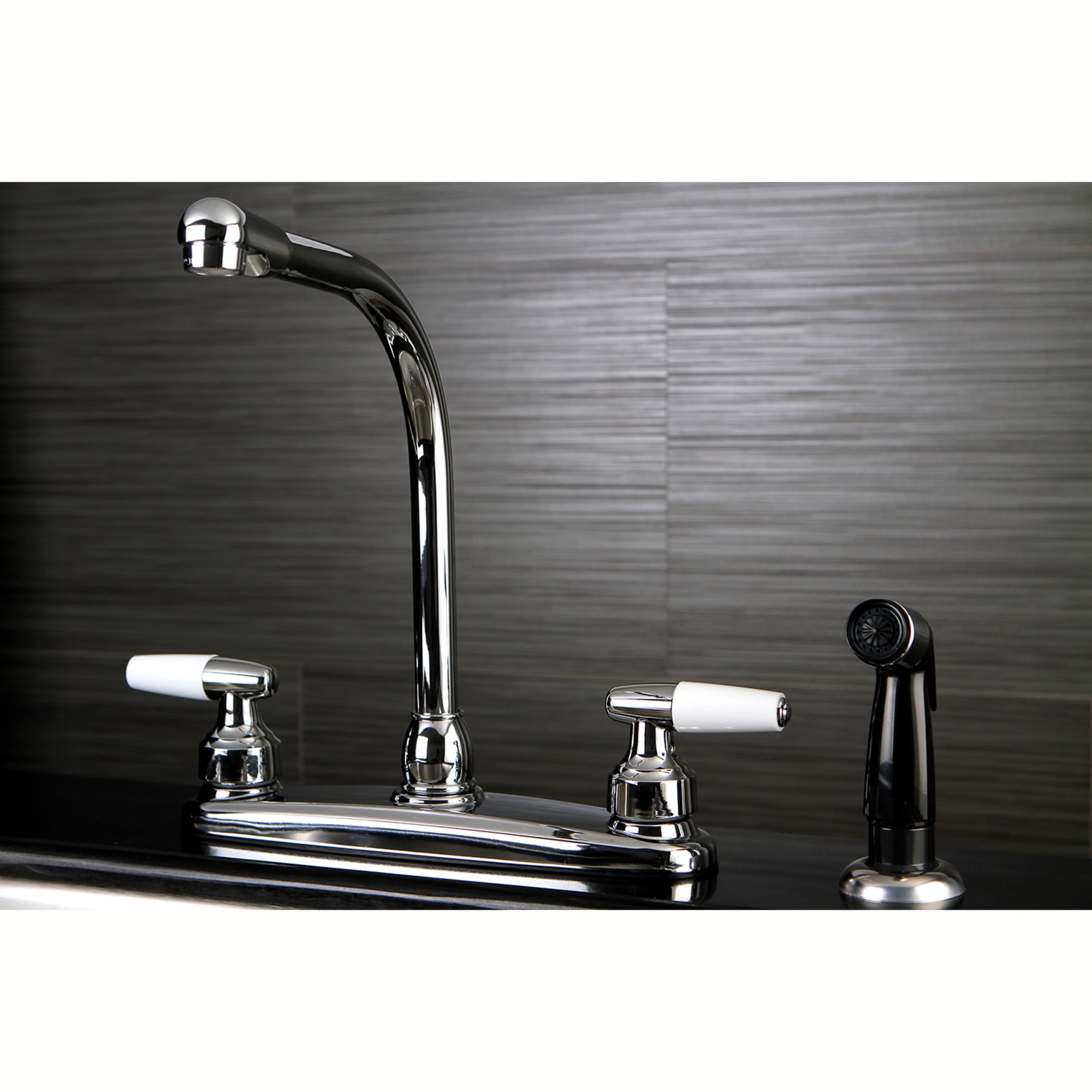 Kingston FB751 Americana Two-Handle 4-Hole 8″ Centerset Kitchen Faucet with Side Sprayer in Polished Chrome