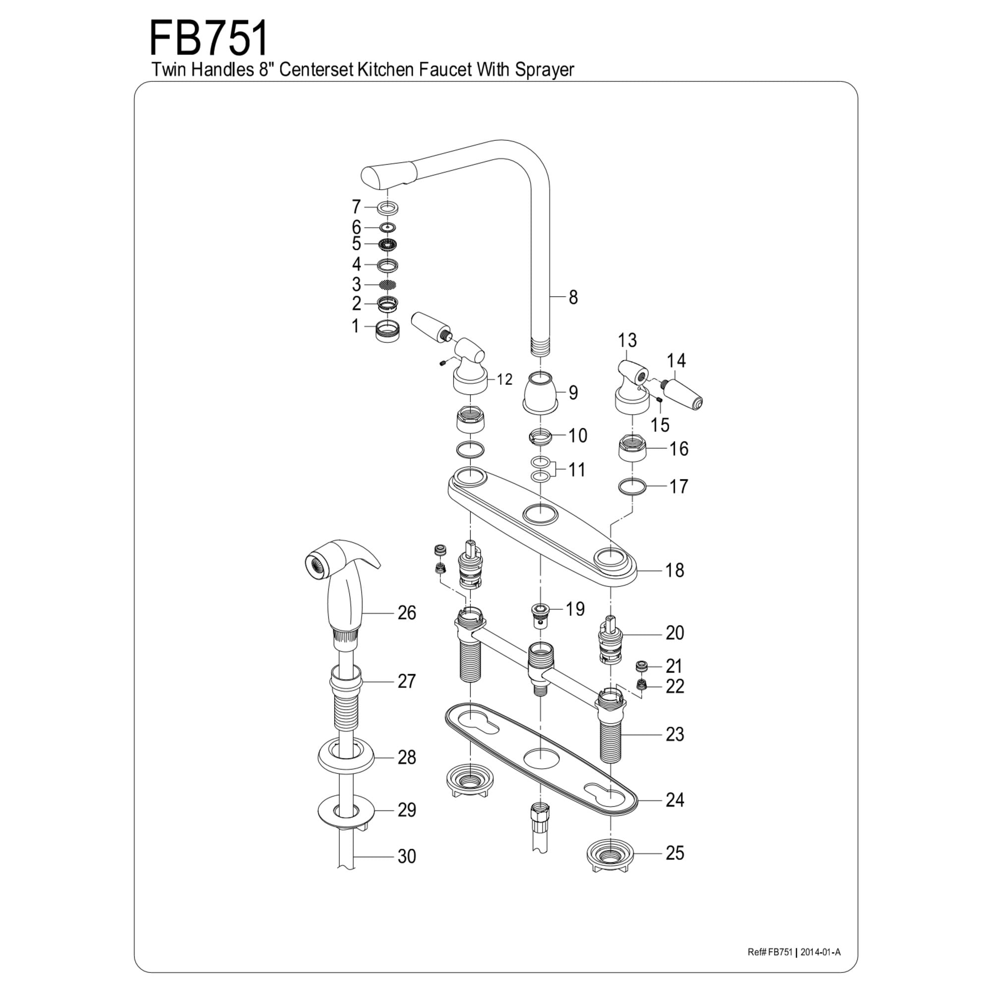 Solid brass, zinc alloy, nylon and ABS construction Durable washerless cartridge Deck mount 8″ centerset 4-hole installation 1.8 GPM/6.8 LPM spout flow rate at 60 PSI 9-13/16″ spout clearance 7″ spout reach 10-7/8″ spout height Dual handles operation Includes side sprayer Corrosion-resistant finish