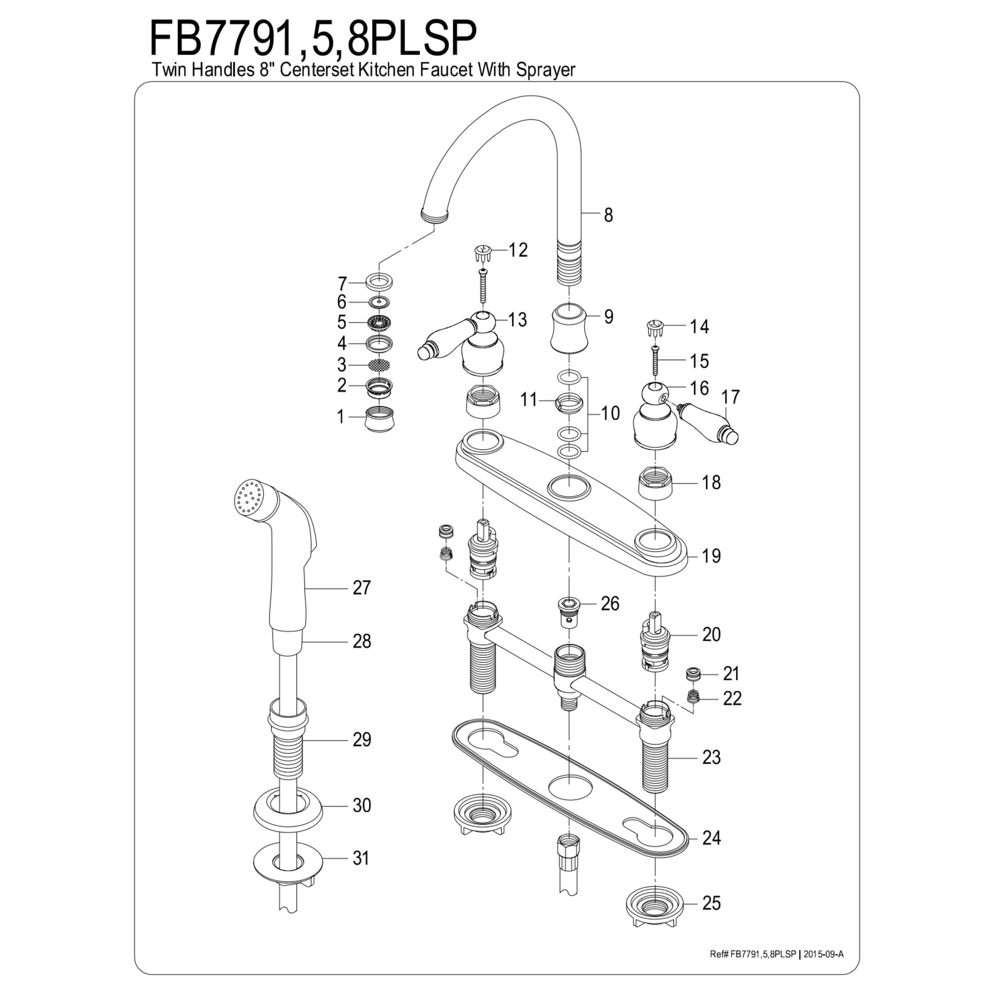 Solid brass and ABS construction Durable washerless cartridge Deck mount 8″ centerset 4-hole installation 1.8 GPM/6.8 LPM spout flow rate at 60 PSI Matching side sprayer included 8″ spout reach 8″ spout clearance 11-15/16″ spout height Corrosion-resistant finish Designed for long-lasting durability