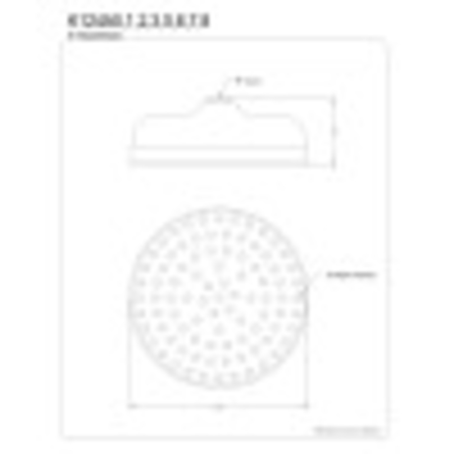 High quality brass construction 91 water channels G 1/2-14 connection 1.8 GPM/6.8 LPM showerhead flow rate at 80 PSI 8″ diameter shower head 3″ height Rain spray shower head Shower arm sold separately; check Kingston Brass catelog for compatibility