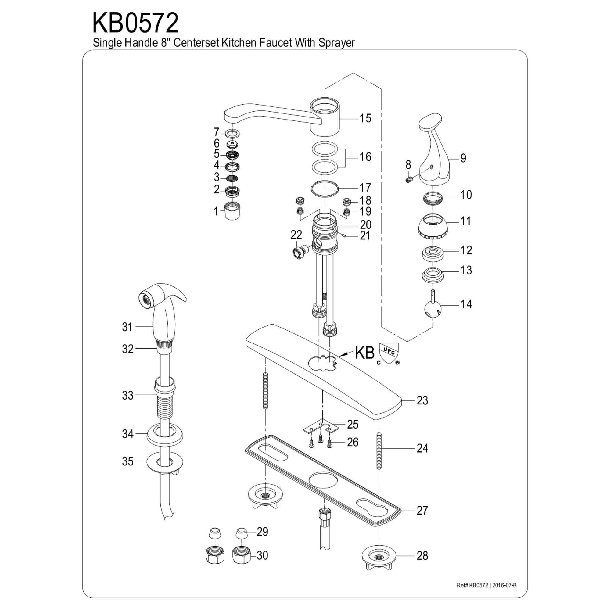 Solid brass construction for durability and reliability Deck mount 8″ centerset 4-hole installation Stainless steel ball-type cartridge Single lever handle meets ADA guidelines 1.8 GPM/6.8 LPM spout flow rate at 60 PSI Standard 1/2″ IPS connection 8″ spout reach 4-1/2″ spout clearance 5-3/8″ spout height Low arc swivel neck spout Corrosion-resistant finish Includes side sprayer