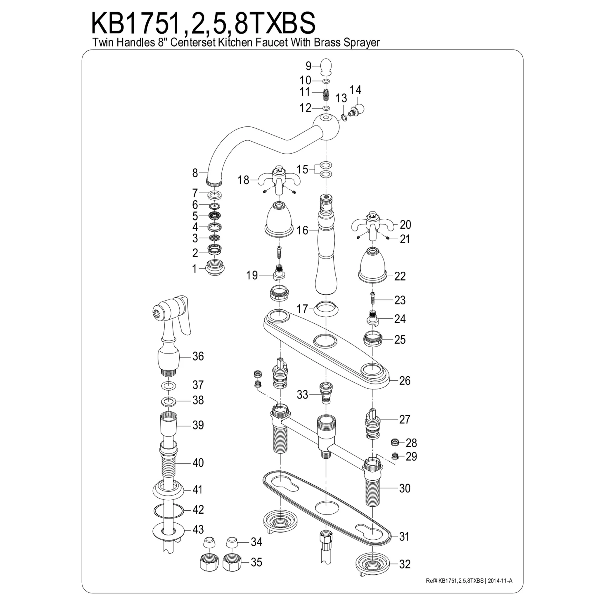 Kingston KB1755TXBS French Country Two-Handle 4-Hole 8″ Centerset Kitchen Faucet with Brass Sprayer in Oil Rubbed Bronze