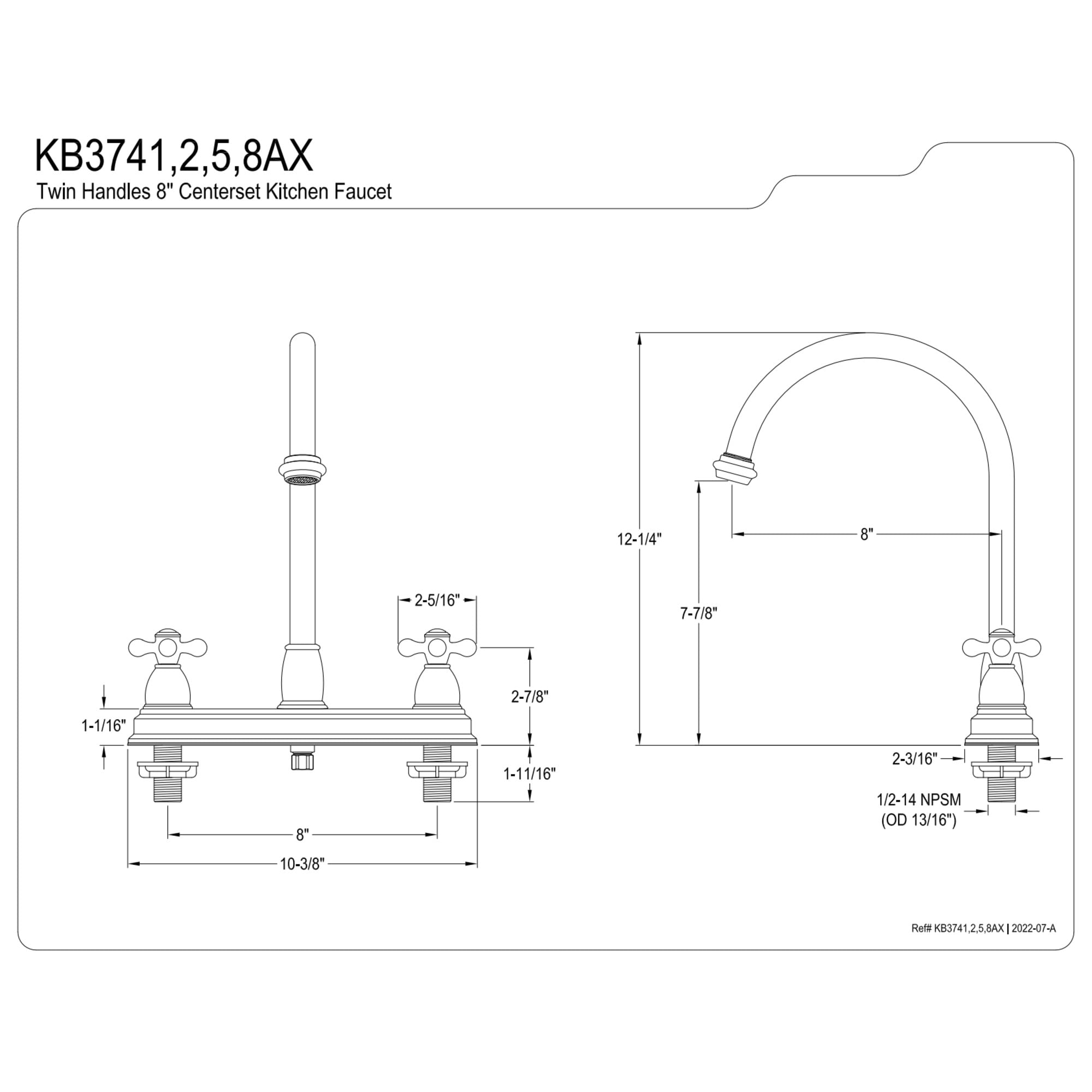 Kingston KB3748AX Restoration Two-Handle 3-Hole 8″ Centerset Kitchen Faucet in Brushed Nickel
