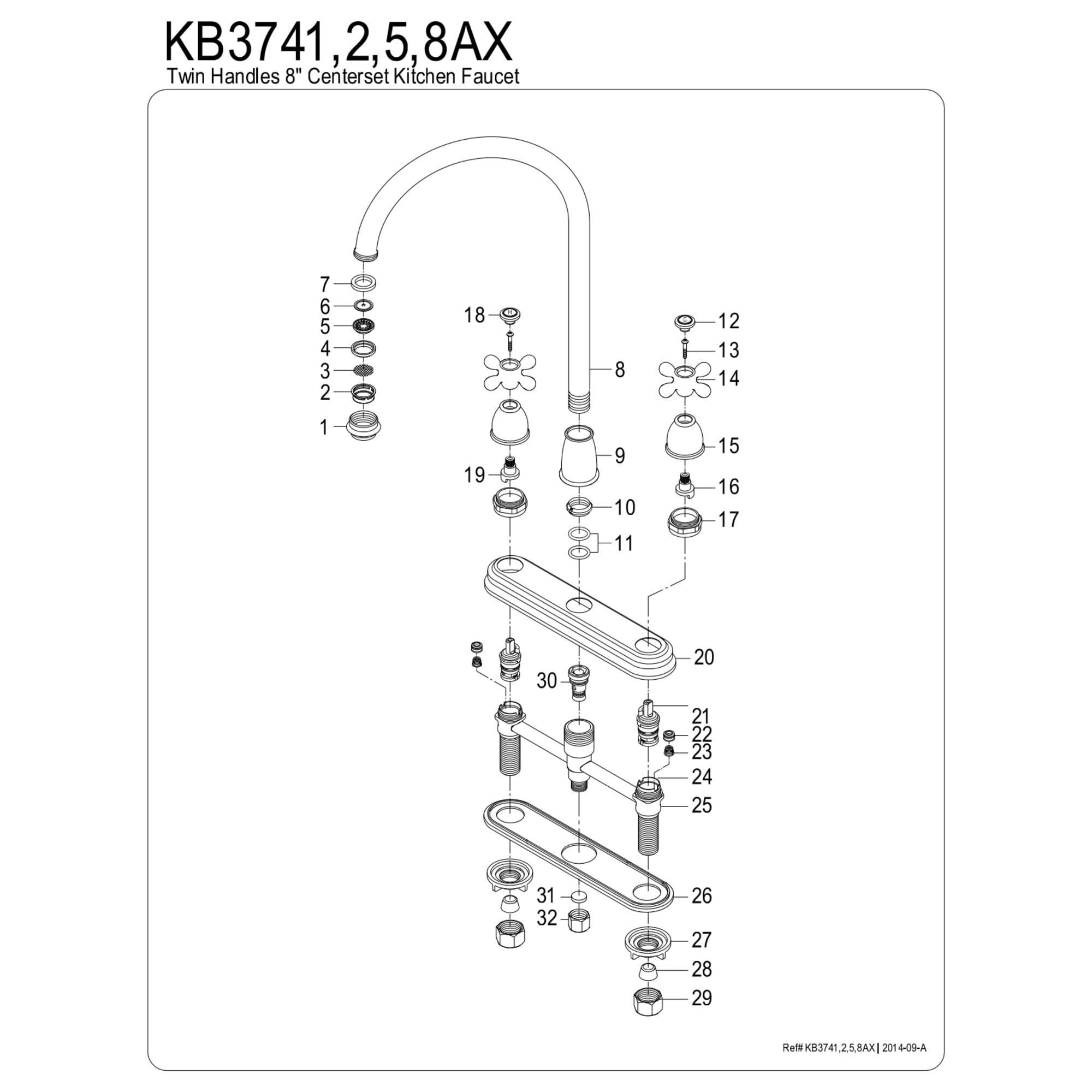 Durable washerless cartridge Deck mount 8″ centerset 3-hole installation Spout reach: 8″ Spout height: 12-1/4″ Swivel spout Corrosion-resistant finish