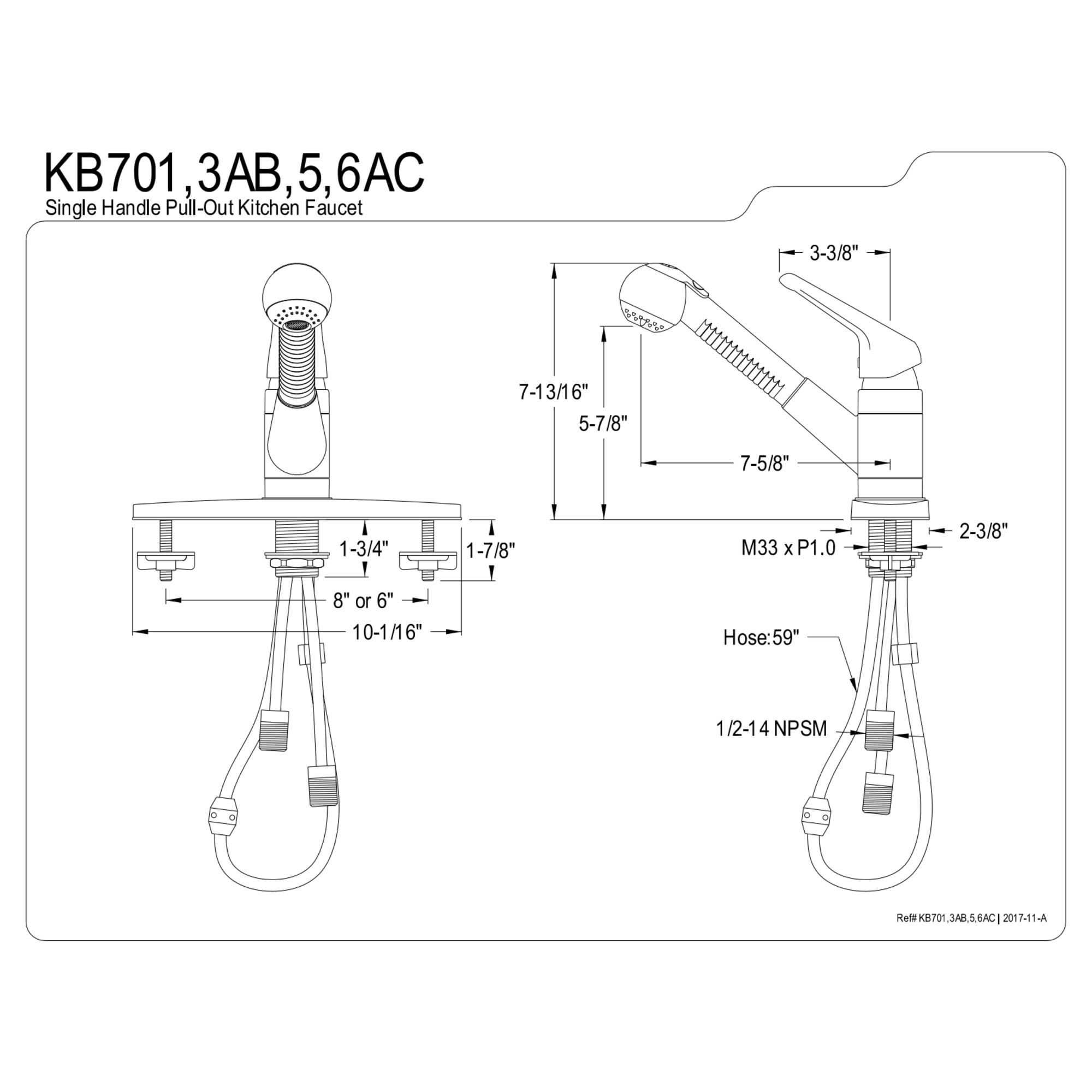Kingston Brass KB701 Single-Handle 1-or-3 Hole Deck Mount Pull-Out Sprayer Kitchen Faucet in Polished Chrome