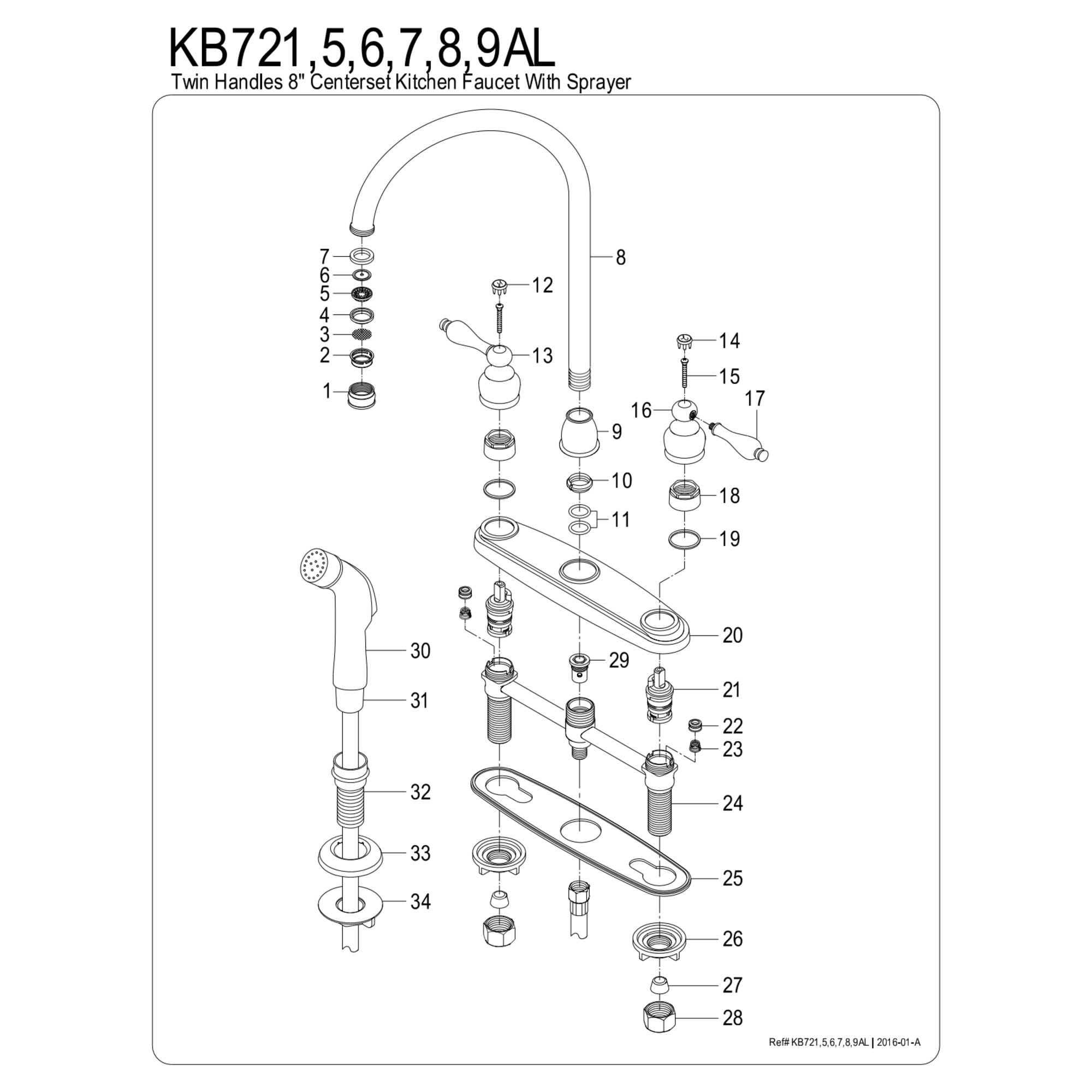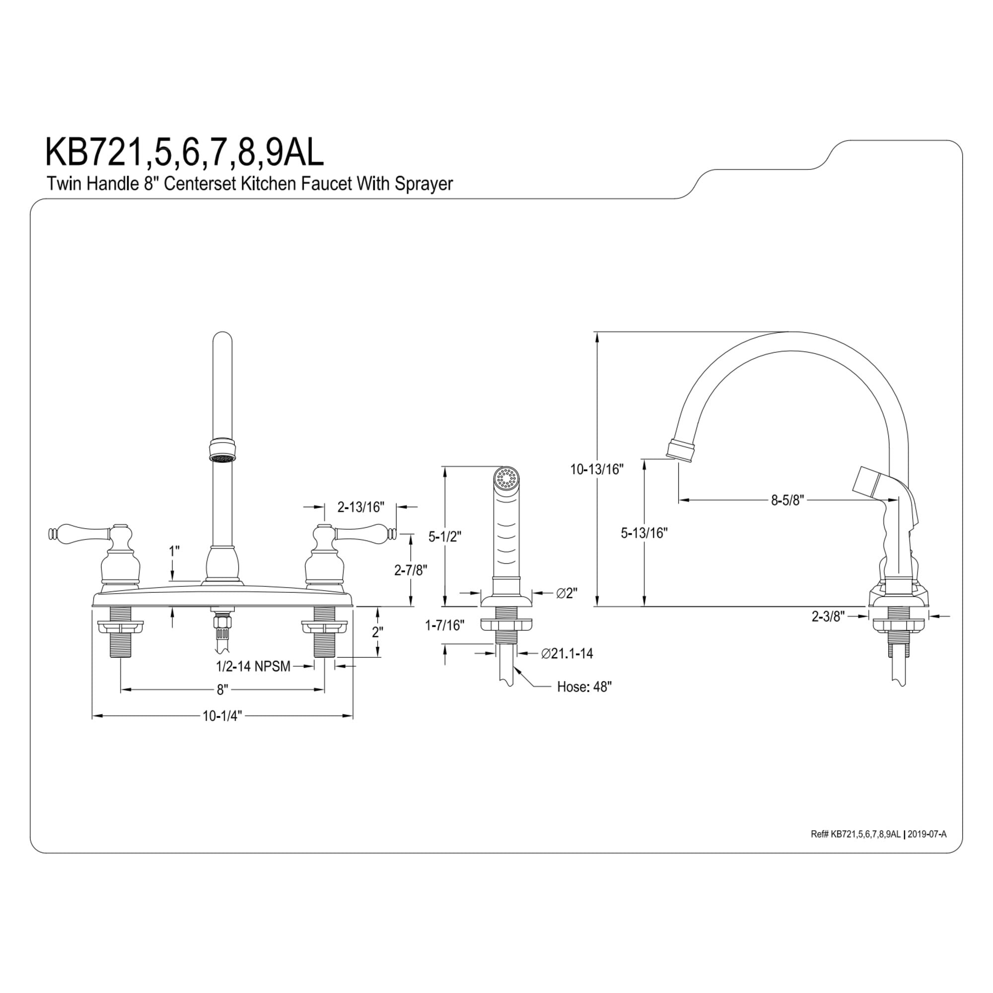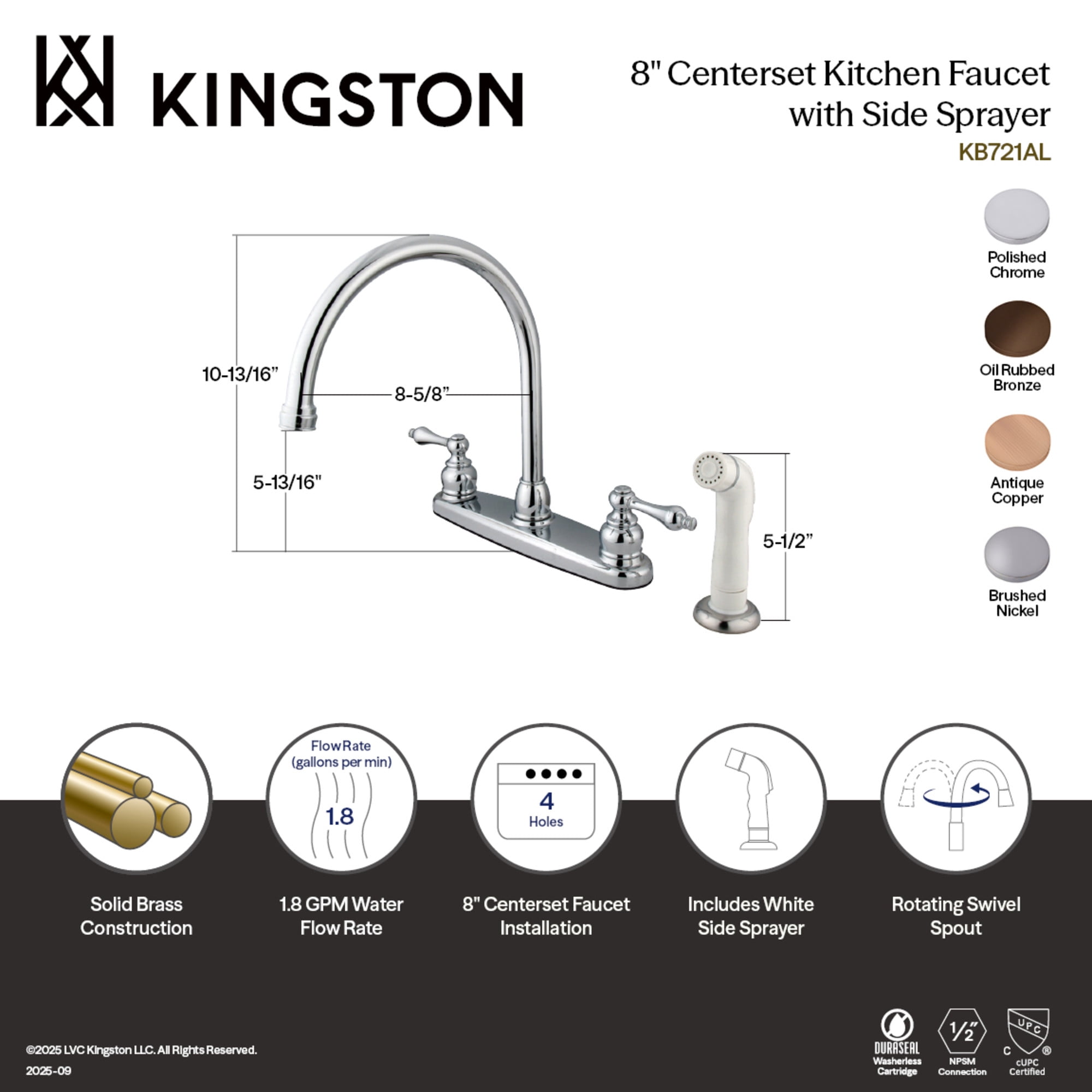 Kingston KB721AL Vintage Two-Handle 4-Hole 8″ Centerset Kitchen Faucet with Side Sprayer in Polished Chrome