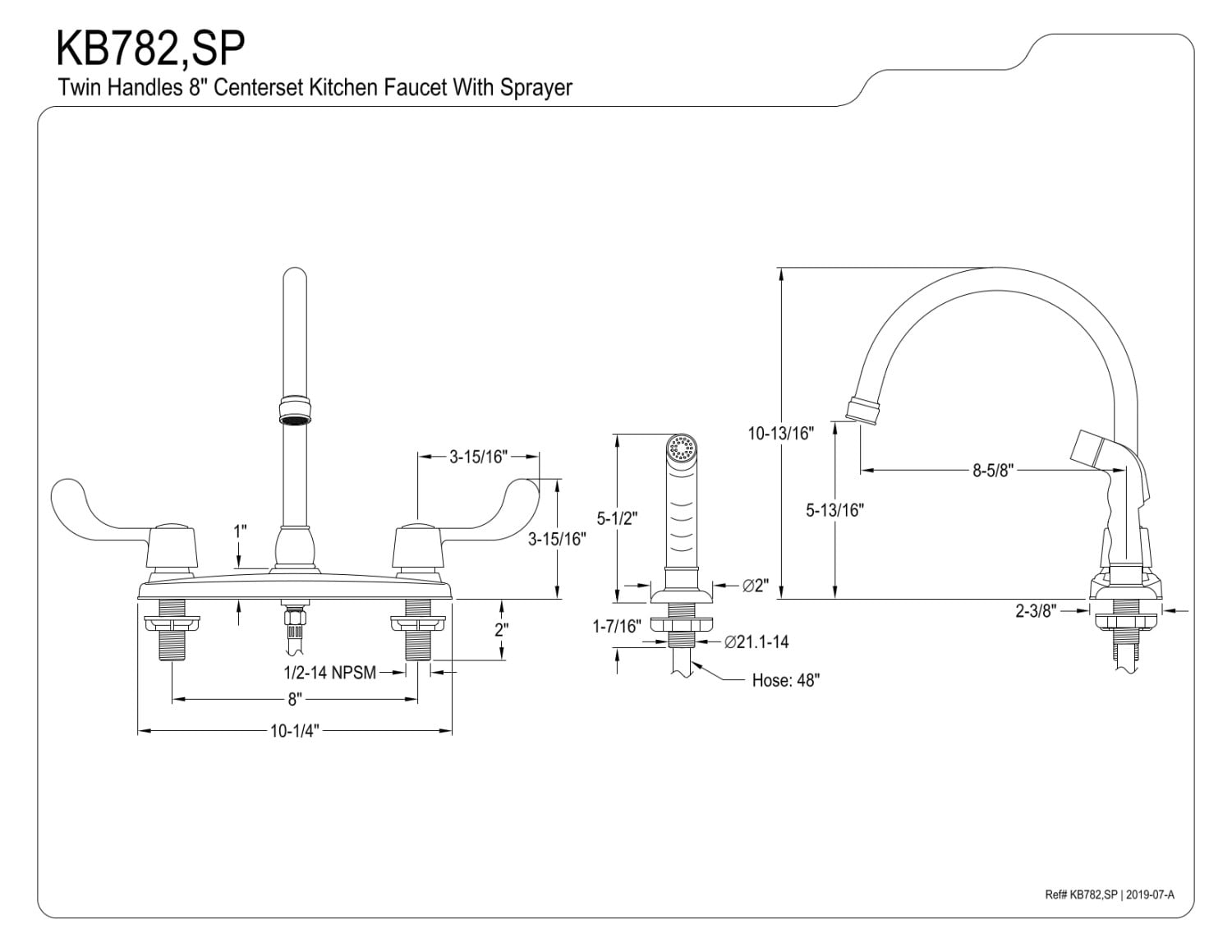 Goose Neck Swivel Spout 1/4 Turn Washerless Cartridge 4 Hole Installation with 6″ spout clearance Wrist blade handles White Side Sprayer Included 1.8 GPM/6.8 LPM Water Flow Rate At 60 PSI (ASME standard) Compliant with California Energy Commission Title 20