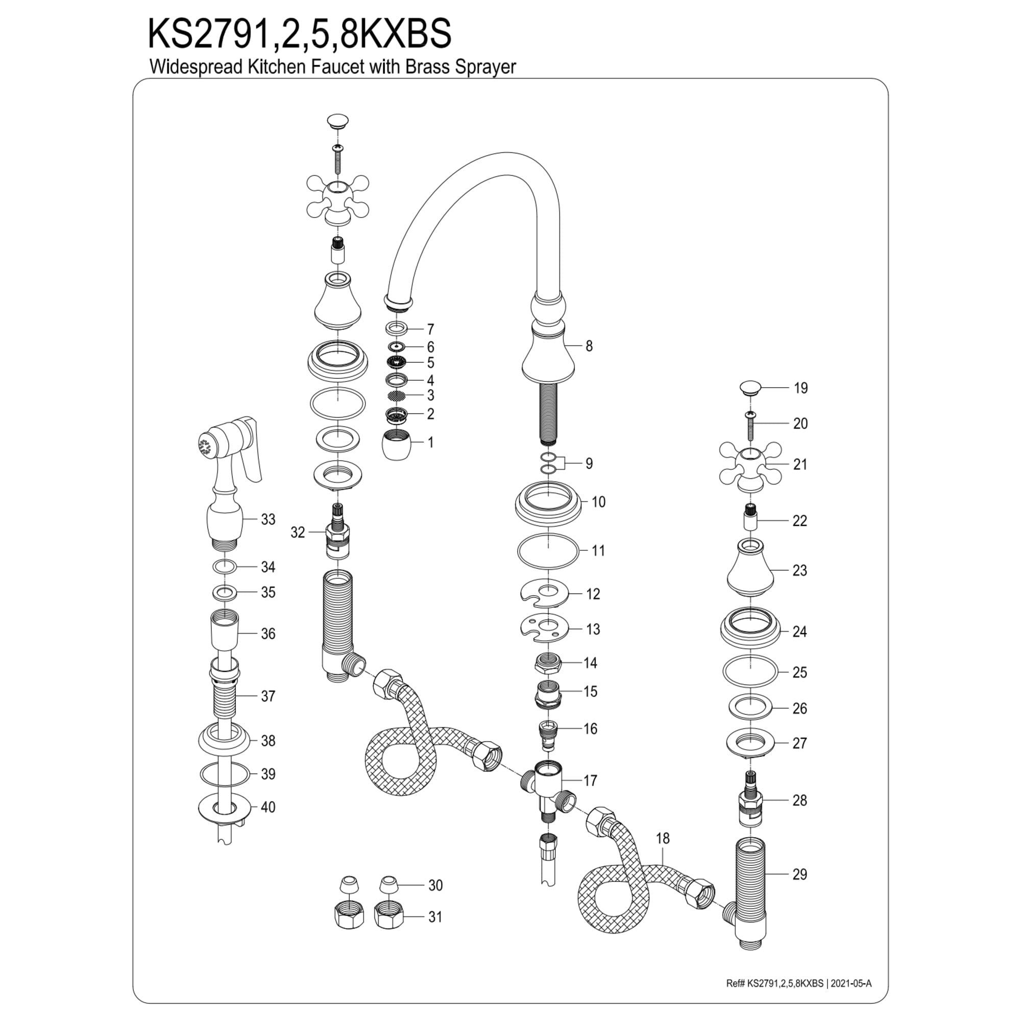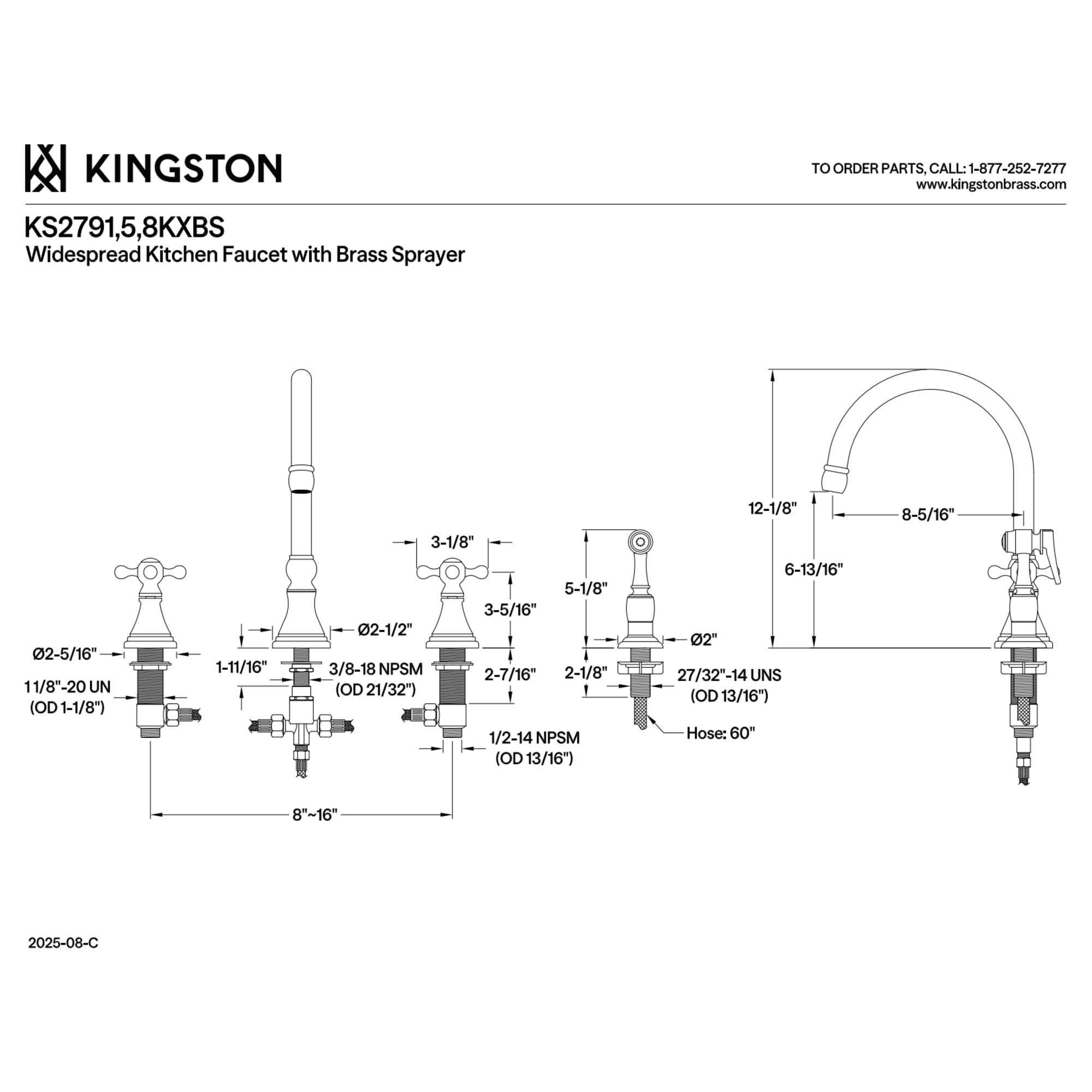 Solid brass construction for durability Deck mount 8″ to 16″ widespread 4-hole installation Drip-free ceramic disc cartridge Standard 1/2″ IPS connection 1.8 GPM/6.8 LPM spout flow rate at 60 PSI 8-1/4″ spout reach 6-7/8″ spout clearance 11-7/8″ spout height Gooseneck swivel spout Dual cross handles for easy rotation Includes brass side sprayer