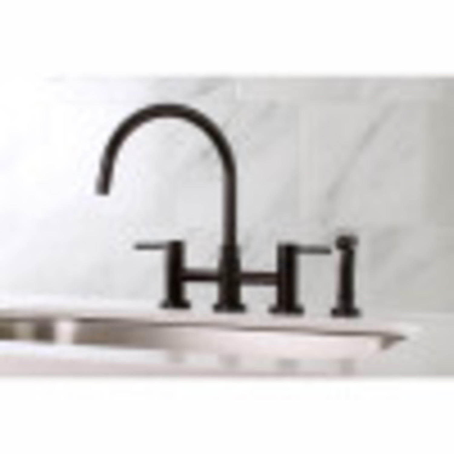 Kingston Brass KS8275DLBS Concord Two-Handle Bridge Kitchen Faucet with Brass Side Sprayer, Oil Rubbed Bronze Solid Brass and Zinc Alloy Construction Drip-Free Ceramic Disc Cartridge Deck Mount 4-Hole Installation 1.8 GPM/6.8 LPM Spout Flow Rate at 60 PSI 1/2″-14 NPSM Inlet Connection 7-5/8″ Spout Clearance 9-1/8″ Spout Reach Includes Side Sprayer Corrosion-Resistant Finish Designed for Long-Lasting Durability