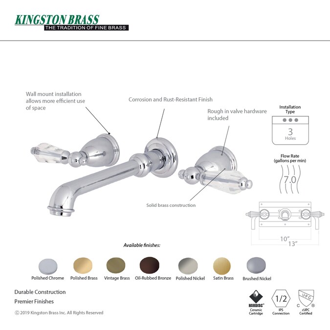 - 7.0 gpm/26.5 lpm spout flow rate at 80 psi