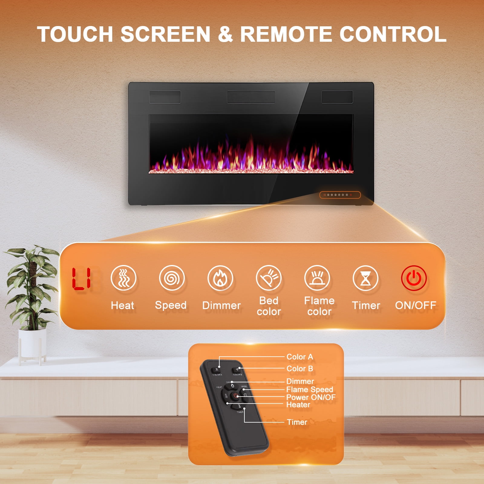 KISSAIR 36’’ 1500W Wall Mounted Recessed Electric Fireplace,12 Flame Color Modes,Touch Screen & Remote Control,Ultra Thin & Low Noise