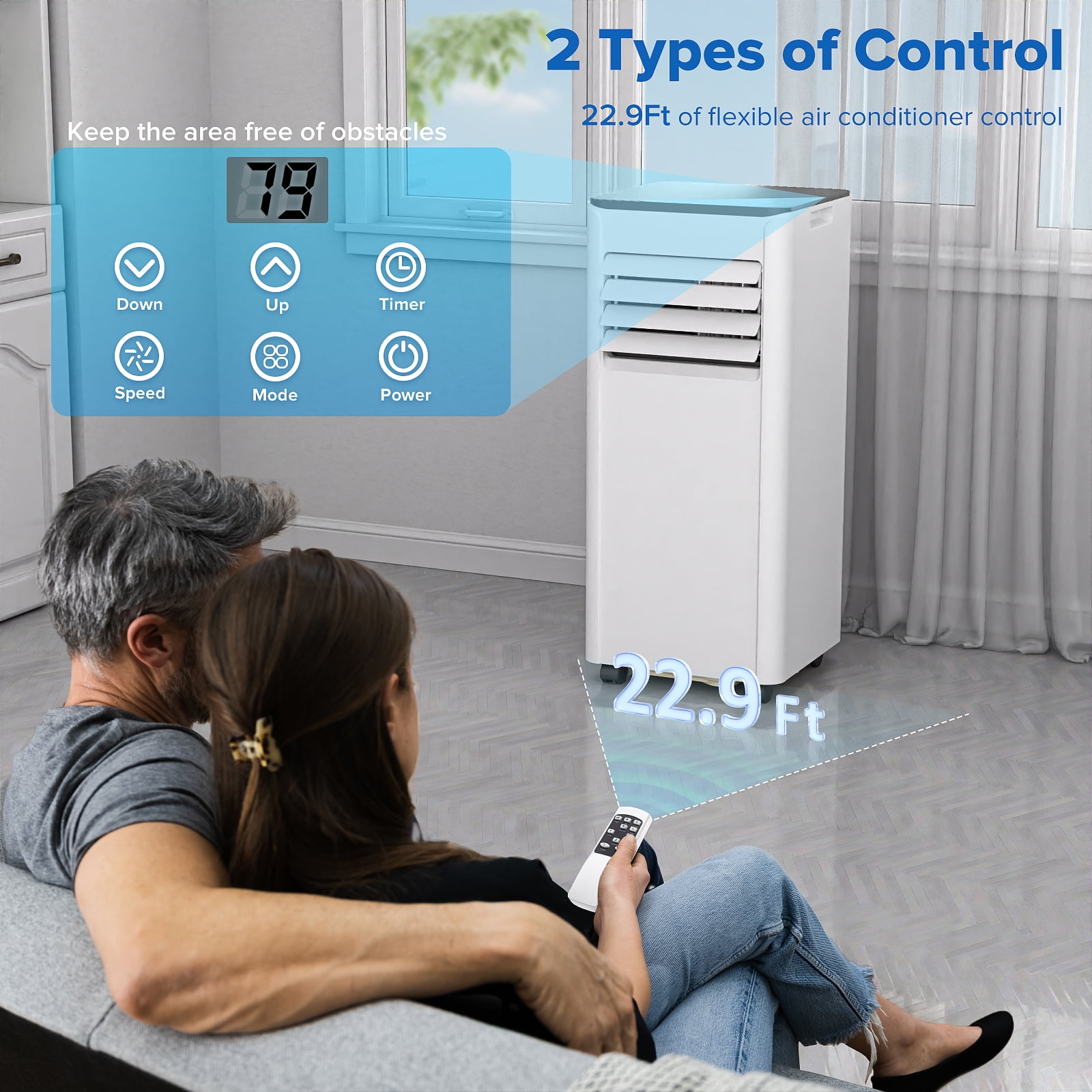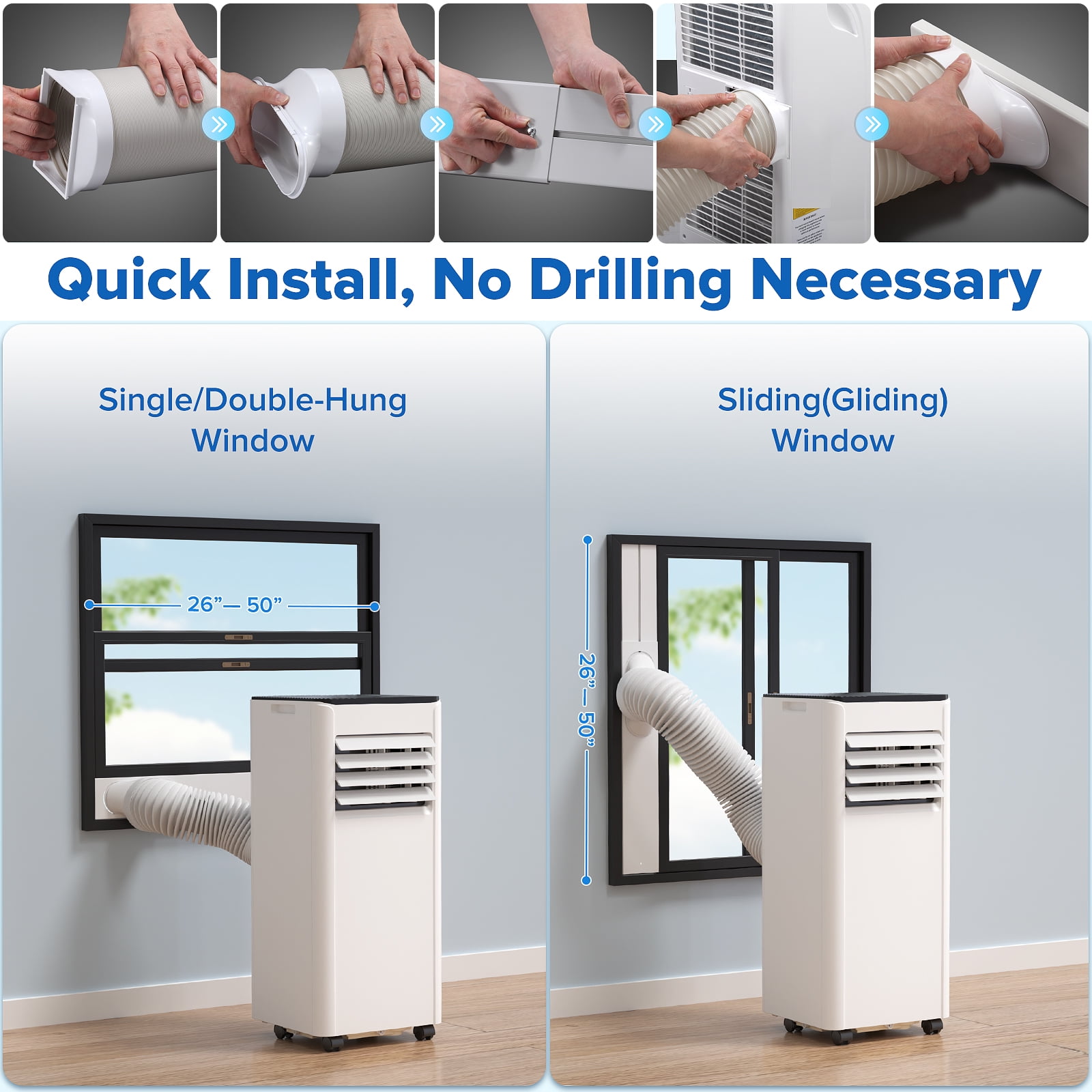 [Energy-Efficient Cooling]: The KISSAIR 8000 BTU ASHRAE portable AC delivers powerful cooling for rooms up to 350 sq. ft while using less energy than traditional window units, saving you money on electricity bills. Perfect for bedrooms, apartments, offices, or small living spaces, it’s an affordable and efficient alternative to bulky, expensive air conditioners. [4-in-1 Versatile Modes]: The portable AC features four smart modes: Cool (fast cooling), Dehumidify (humidity control), Fan (air circulation), and Sleep (<54 dB quiet operation). Easily controlled via remote, it delivers powerful yet energy-efficient cooling while maintaining whisper-quiet nighttime performance. Perfect for light sleepers and humid climates, this versatile unit adapts to all your comfort needs. [Effortless Setup & Portability]: This freestanding AC features smooth-rolling wheels for easy room-to-room mobility, ideal for renters. The universal window kit fits sliding/hanging windows without tools. Compact yet powerful, it works equally well as primary garage cooling or supplemental home AC. [Easy-Maintenance Air Filters]: Outperforming single-hose units, this room air conditioner delivers faster cooling through its dual-hose system. The washable air filter captures dust and allergens (clean every 2 weeks), while smart climate control maintains ideal temperatures. Combining efficient performance with easy maintenance, it provides fresh, comfortably cooled air for your space. [Perfect for Hot Climates & Small Spaces]: Whether you need a portable air conditioner for Texas heat, a budget-friendly cooling solution under $300, or a quietest portable air conditioner for night use, KISSAIR delivers reliable performance. [Reliable Customer Support]: KISSAIR is dedicated to quality products and exceptional service. If you have any questions or concerns, our team is ready to assist and resolve issues within 24 hours.