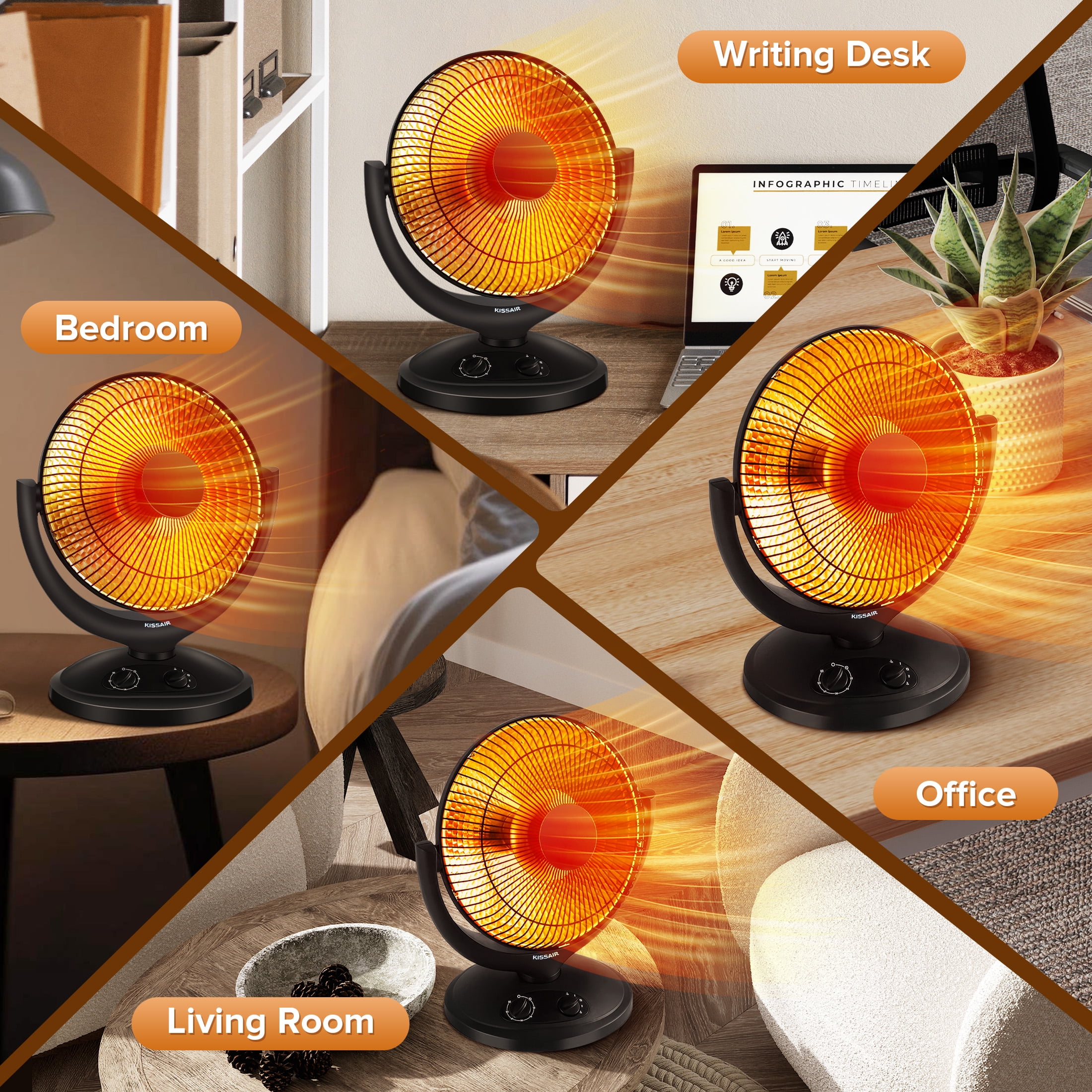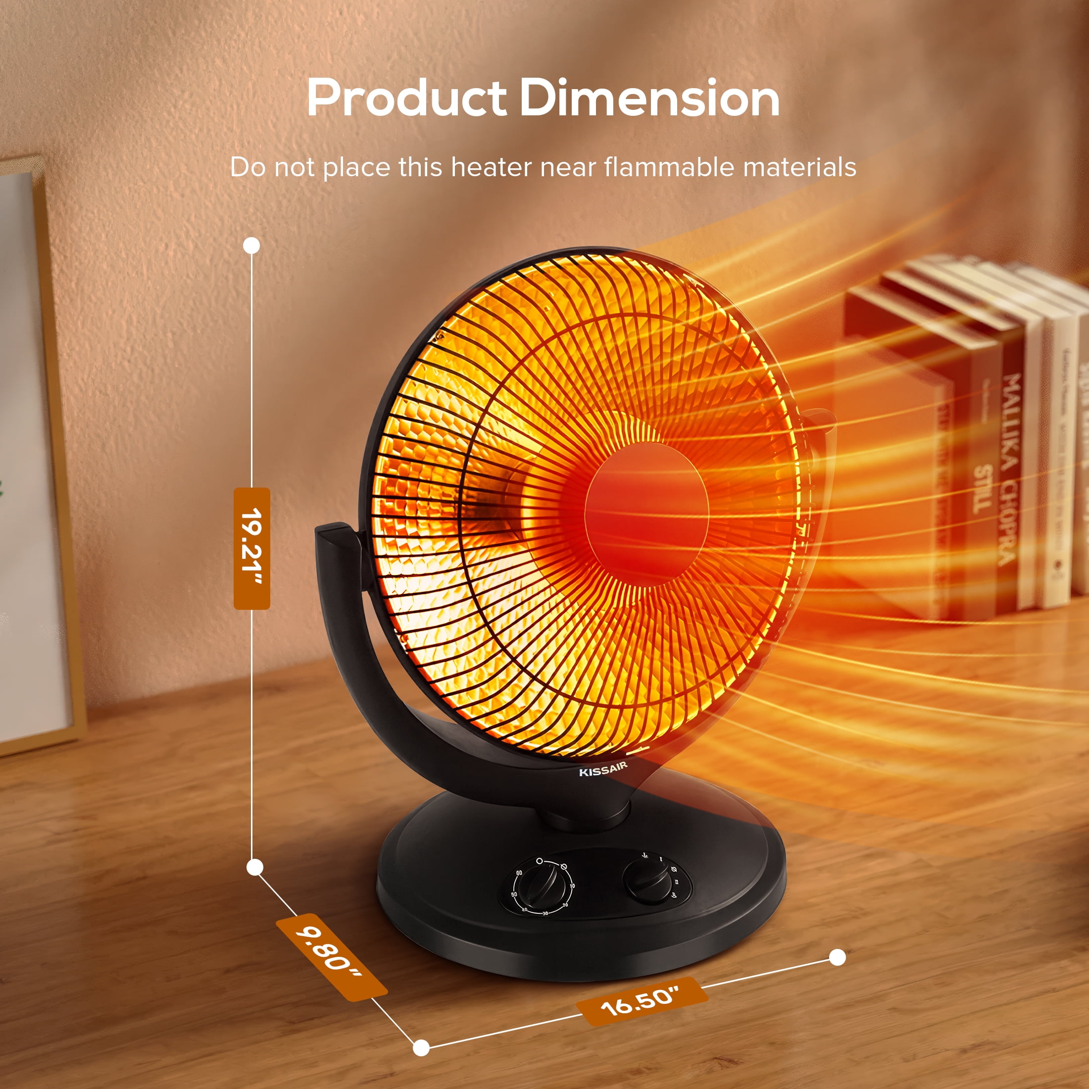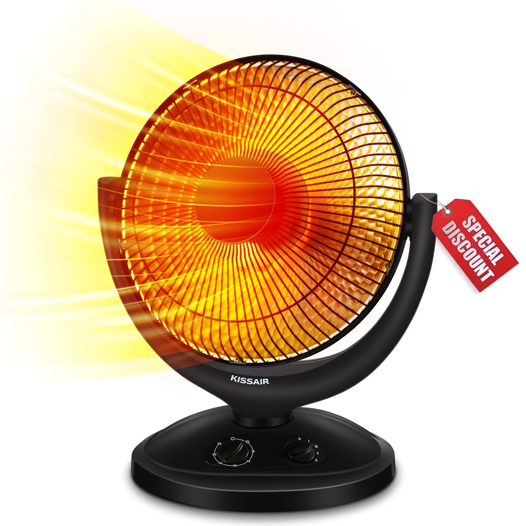 KISSAIR Radiant Dish Heater, Oscillating Space Heater with Timer, Overheat and Tip-over protection