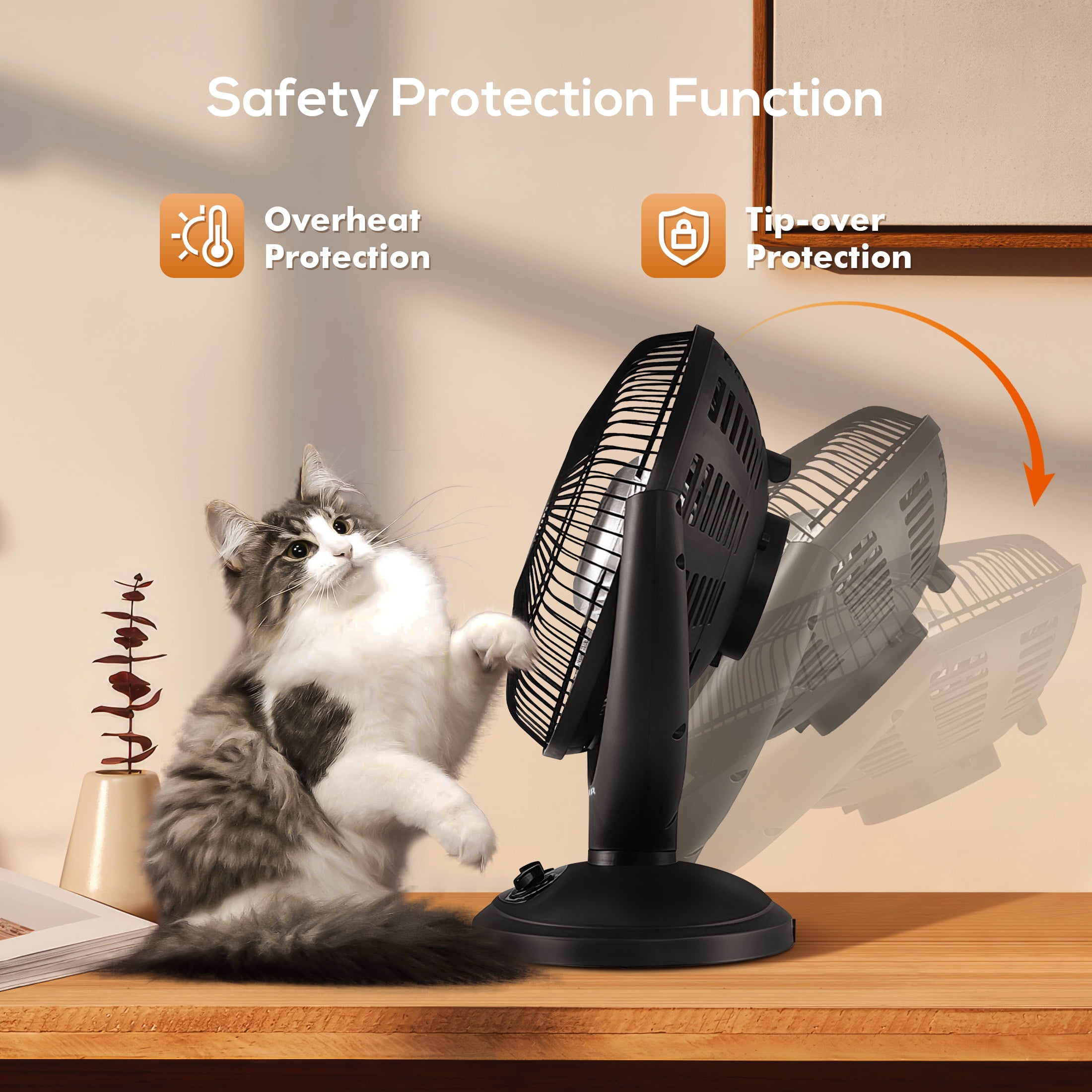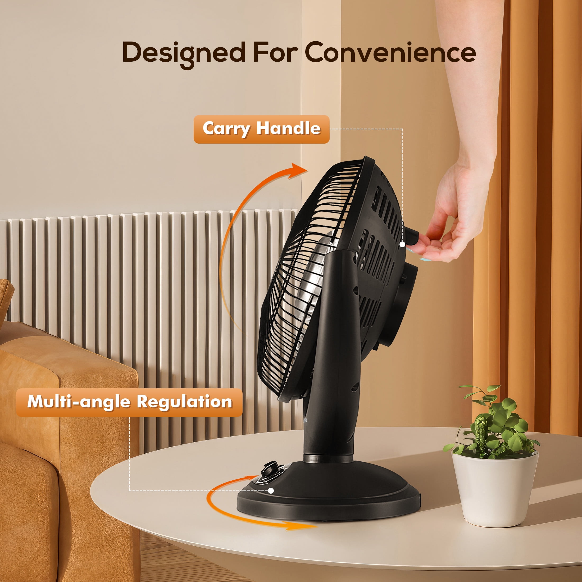 Compact and portable: The size is only 16.54 (L) x 9.84 (W) x 18.90 (H) inches, which will not take up too much space for you. And the handle is also designed on the back, weighing only 3.96 lbs, which can be lifted up and walked anywhere you want. It can be placed on the countertop of the office or writing desk, or on the floor or table of the living room. Two adjustable heating settings: Heating intensity can be selected as 400W/800W, the heater can react in a short time by turning the knob and provide corresponding temperature intensity. Of course, you can choose OSC mode to cooperate with it. With a powerful dish reflector, you can easily circulate air throughout the entire space. Excellent safety protection function: The heater is equipped with an overheating protection system and a tipping protection system installed at the bottom. The heater will turn off automatically in the event of overheating or malfunction and reset itself when you reinsert the plug and the temperature drops to the normal level, suitable for indoor use in residential areas. To increase protection, if the device is accidentally knocked down, the built-in flip switch will also turn off the power, which will be very friendly for pets and babies at home. Extremely useful oscillation mode: In oscillation mode, the heating of the heater can be brought to various corners of the room, and the circulating heat will bring you ubiquitous comfort. At the same time, it can adjust the angle up, down, left, and right, greatly allowing you to choose the most comfortable mode. Using excellent carbon heating method: It can increase the conversion rate of electric heating, making it more energy-efficient and environmentally friendly. And voltage fluctuations will not affect the lifespan of the heating tube, resulting in a longer service life. The radiation heating efficiency is high and fast, which can provide you with a comfortable environment in the shortest possible time.