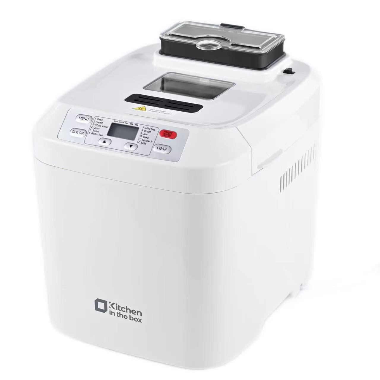 Kitchen in the Box 2lb Bread Maker with Auto Fruit Nut Dispenser, 12-in-1 Gluten-Free Bread Machine, 13H Delay Timer, Nonstick Pan, Keep Warm, White