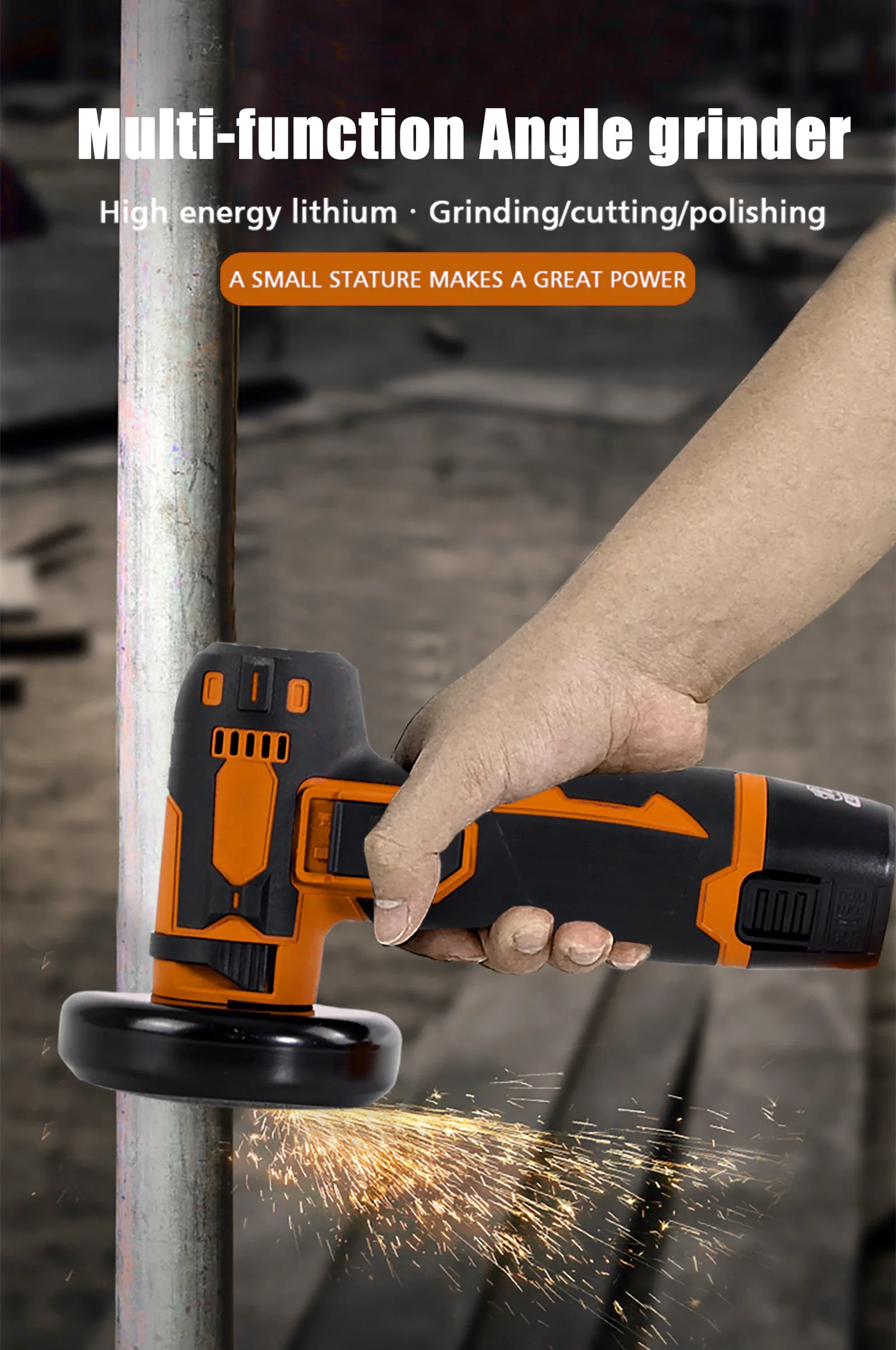 This handheld portable angle grinder has a lot of powerful functions for you to experience. You can use it for ceramic tile gaps cleaning, wood plate cutting, plastics cutting and so on. If you are looking for a new angle grinding machine, come and try this product, it will not let you down. Features: 【Compact】 angle grinder is designed to be lightweight at only 1100g. and can be operated by either man or woman with one hand. Widely used for grinding, cutting, sanding and polishing processing of various materials, including metal, tile, concrete, pipes, conduits and other solid materials. 【Wireless & Long-Lasting】Cordless eliminates the trouble of the winding cables and gives great convenience to carry around, which is suitable for indoor and outdoor use. Meanwhile equipped with a 1300mah large capacity rechargeable lithium ion battery and a quick , it can keep the cordless angle grinder working stably for a long time. 【High Performance】spends countless tests, studies and strict production to ensure that each motor and battery can provide strong and stable power. The wireless Angle grinder has a real speed of 19500 RPM. With excellent cooling system, it can help the user to finish the work more stably and quickly. 【Ergonomic Details】The body part of the Angle grinder is also covered by comfortable rubber material, with -slip grain, bringing you a better use experience. systembutton for grinding wheel and cutting wheel. 【A Complete Set You Need】A complete set of high-quality tools can help many users save a lot of troubles. Just need a simple one-click order to get many tools and accessories you need. Each cut-off tool kit contains, 1*cordless angle grinder; 2*metal cutting wheel (3″); 1*; 2* 1300mah battery; and 1*. Specifications: Color: Blue / Orange / Red (Optional) : / (Optional) Material: ABS+CU+FE Model: CG1374 Battery Voltage: Battery Capacity: 1300mah No load speed: 13000 Sanding Blade Diameter: 76mm(3″) Arbor: 10mm Lock Screw: M5 Input: 110-240V 5060Hz Max Input Current: 0.13A Output Voltage: 12. Output Current: 1A Item Size: 20 * 10.5 * 7.5mm / 7.9 * 4.1 * 2.9in Item Weight: 900g / 31.74oz Package Weight: 1100g / 38.8oz Package Size: 22 * 11 * 8cm / 8.7 * 4.3 * 3.1in Package List: 1 * Cordless Angle Grinder 2 * Metal Cutting Wheel (3″) 1 * 2 * 1300mah Battery 1 * 1 * User Manual (English)
