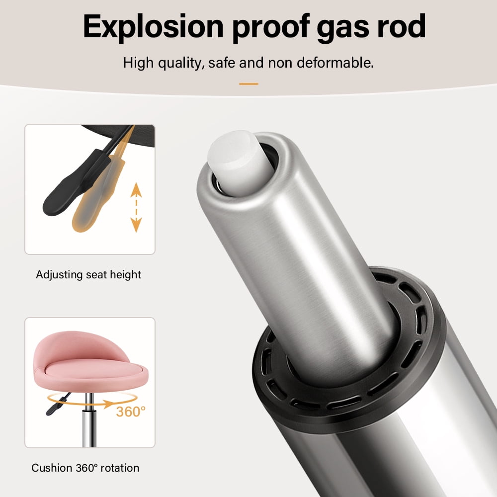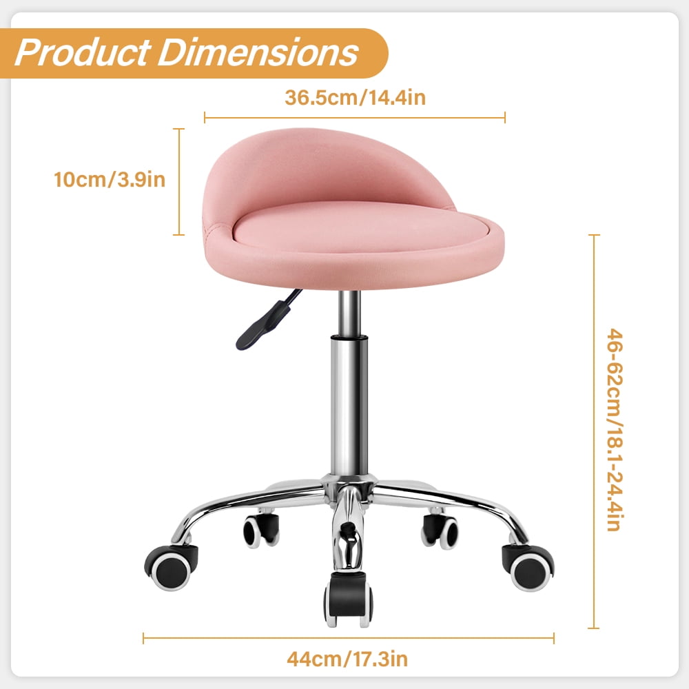 Comfortable cushion made of PU leather with inner sponge upholstered low backrest for long-lasting comfort 360-degree swivel and 5 wheels for easy mobility, perfect for daily work Adjustable seat height ranging from 18.1 inches to 24.4 inches with a smooth adjustable handle Multipurpose design suitable for salons, beauty spas, offices, computer desks, massages, tattoos, homes, and even bars Easy to assemble in just 10 minutes with included assembly instructions