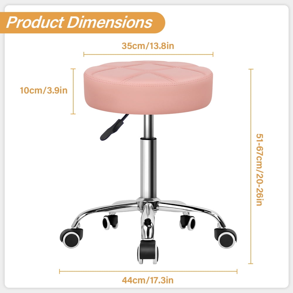 KKTONER Round Swivel Stool with Wheels Adjustable Height Drawing Salon Tattoo Work Office Massage Stool Chair Pink