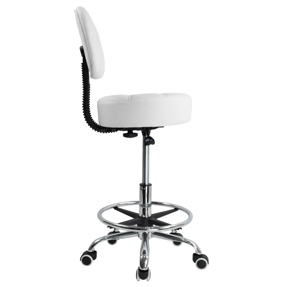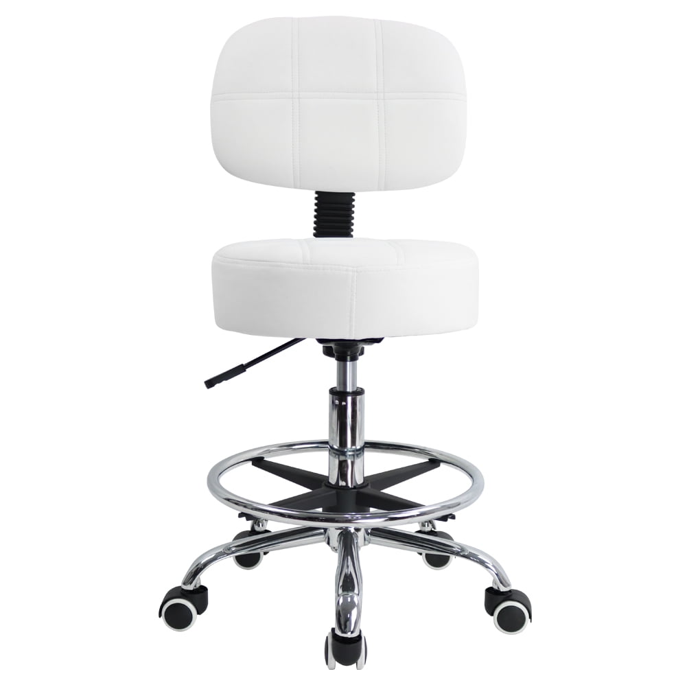 KKTONER Swivel Round Rolling Stool PU Leather with Adjustable Foot Rest, Height Adjustable Task Work Drafting Chair with Back (White)