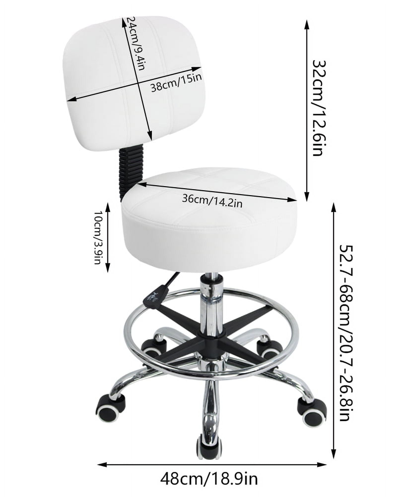 360 Swivel and Seat HEIGHT ADJUSTMENT from 20.75 in to 26.77 in, the footrest can also be adjusted Style:Unique design creates the Drafting stool an industrial look and sleek contemporary style Comfortable: 3.94 in thick and 14.17 in diameter cushion made of PU, Holds up to 297 pounds Easy to assembleï¼Assembly completed in 5 minutes Rolling Stool without Arms ideal for Work Home Kitchen Shop SPA Medical Salon Bars Beauty 360°Swivel,HEIGHT ADJUSTABLE|Style:Unique design creates the Drafting stool an industrial look and sleek contemporary style|Comfortable: 3.94 in thick and 14.17 in diameter cushion made of PU, Holds up to 297 pounds|Easy to assembleâAssembly completed in 5 minutes|Rolling Stool without Arms ideal for Work Home Kitchen Shop SPA Medical Salon Bars Beauty