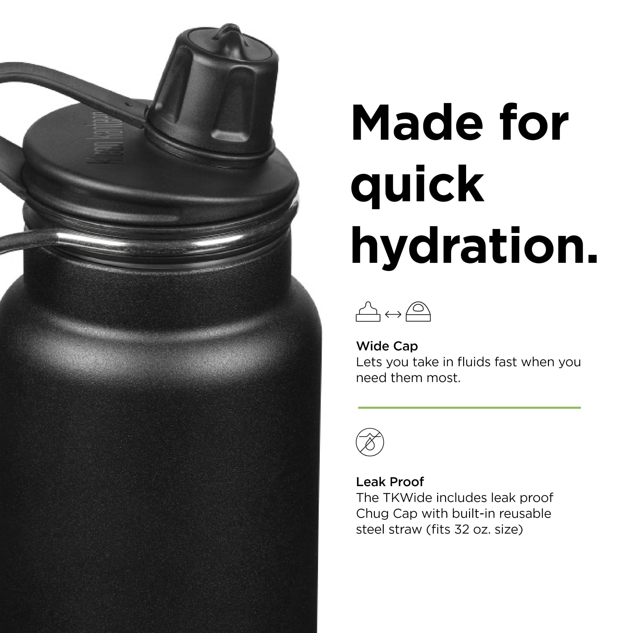 Klean Kanteen 32 fl oz Stainless Steel Insulated Water Bottle Chug Cap Black, 1