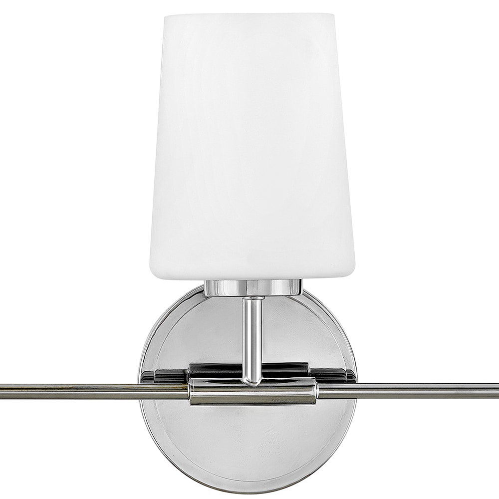 The Kline Three Light Vanity is a Minimalistic option for ambient and task lighting. A stylish Transitional profile that features a 5″ diameter backplate with (3) slender, elongated arms, each balancing an Etched Opal Glass shade. Damp-rated for bathrooms, this bath bar provides both task and ambient lighting in small spaces. Available in three classic finishes: Black, Chrome, and Heritage Brass.