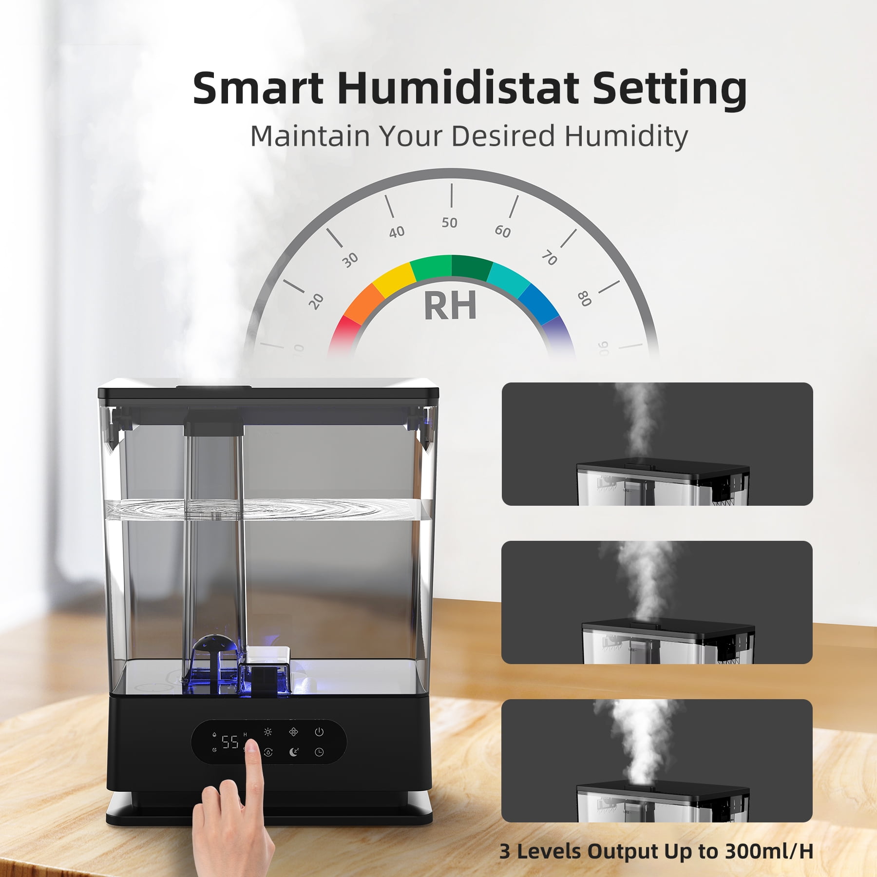 KLOUDIC 6.5L Large Top-fill Humidifier Cool Mist Humidifiers for Home, Bedroom with Customized Humidity for Sleep and Plants, Black