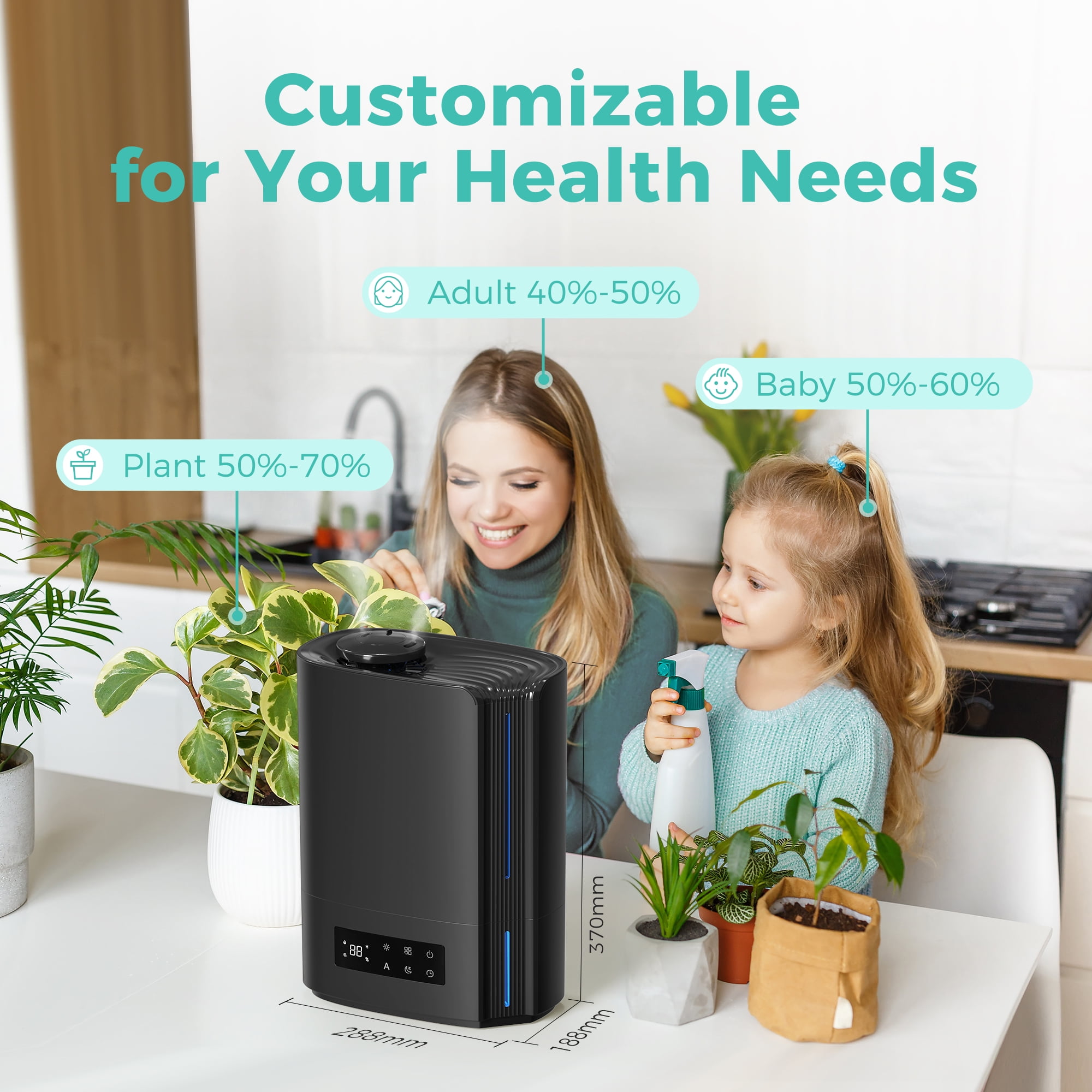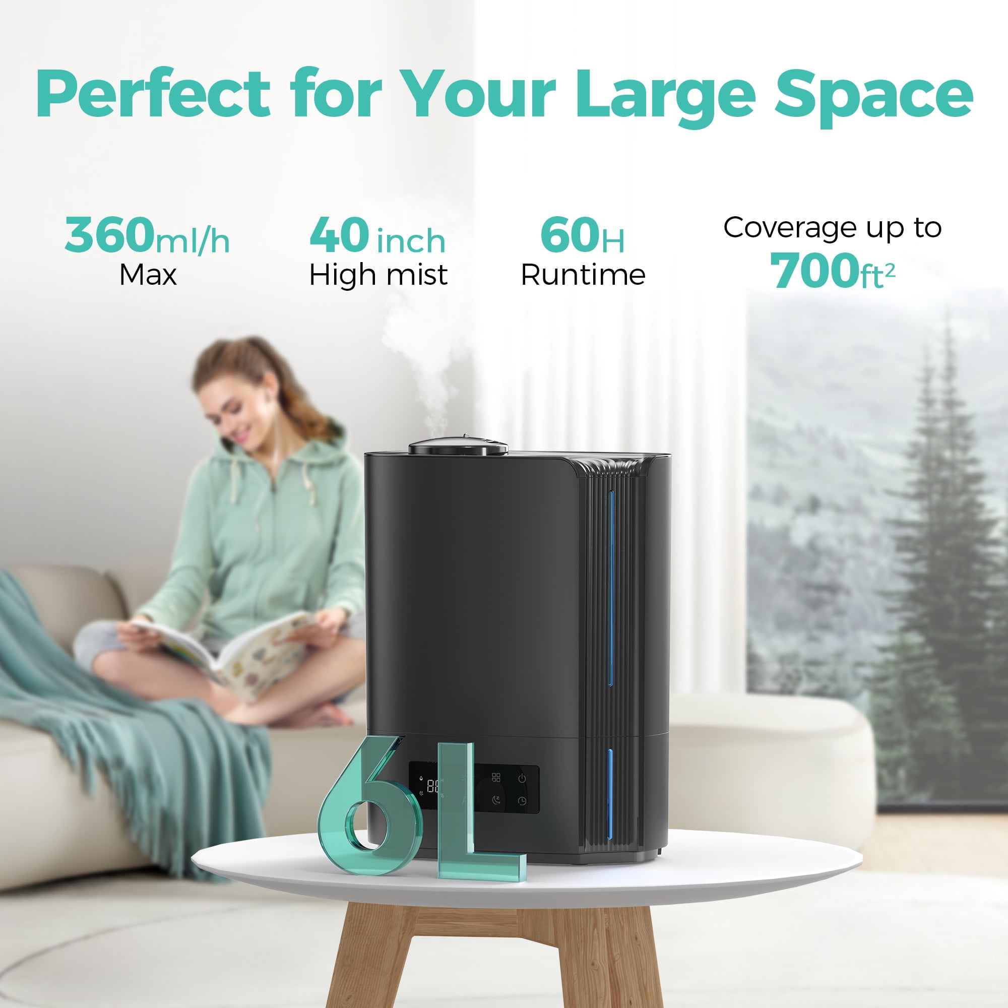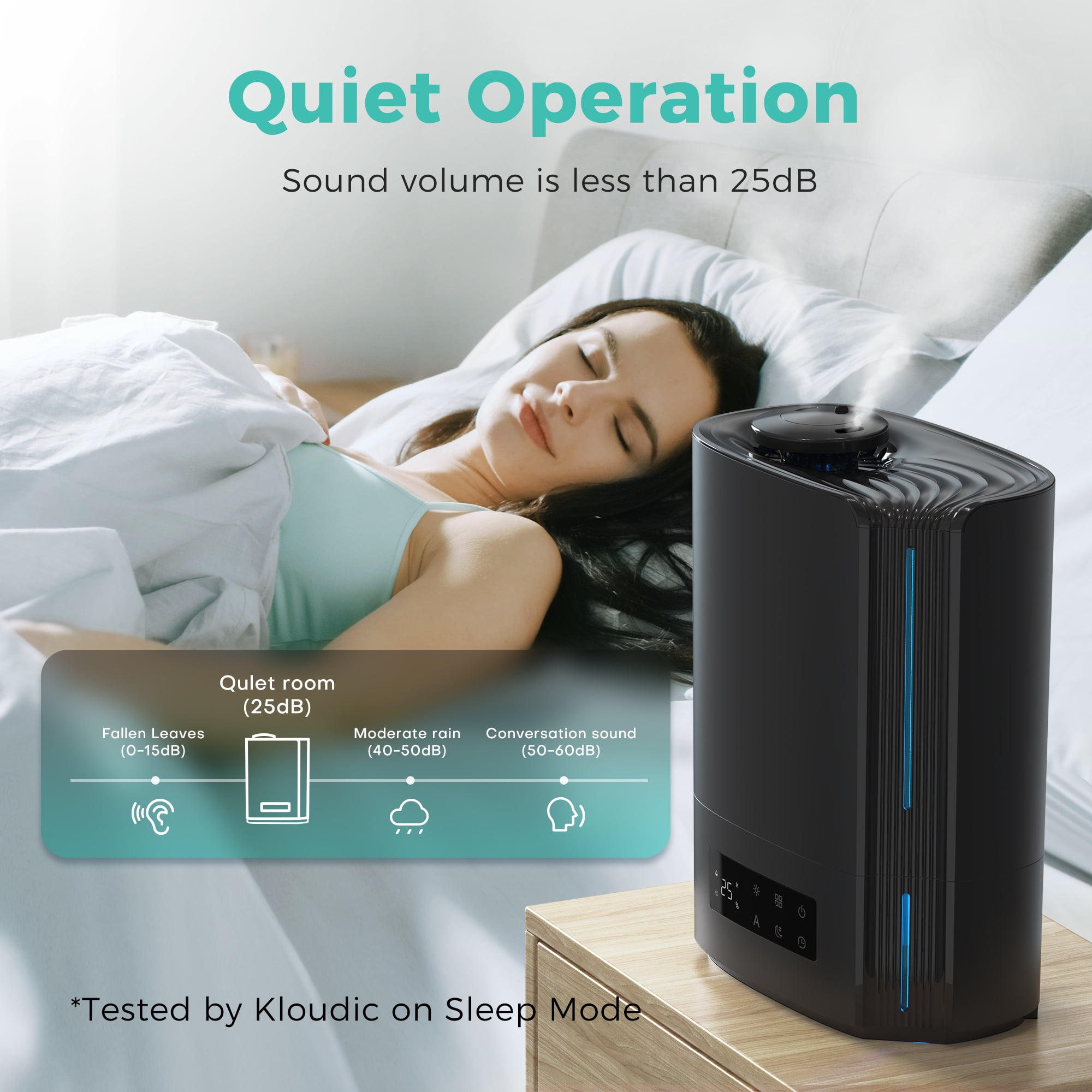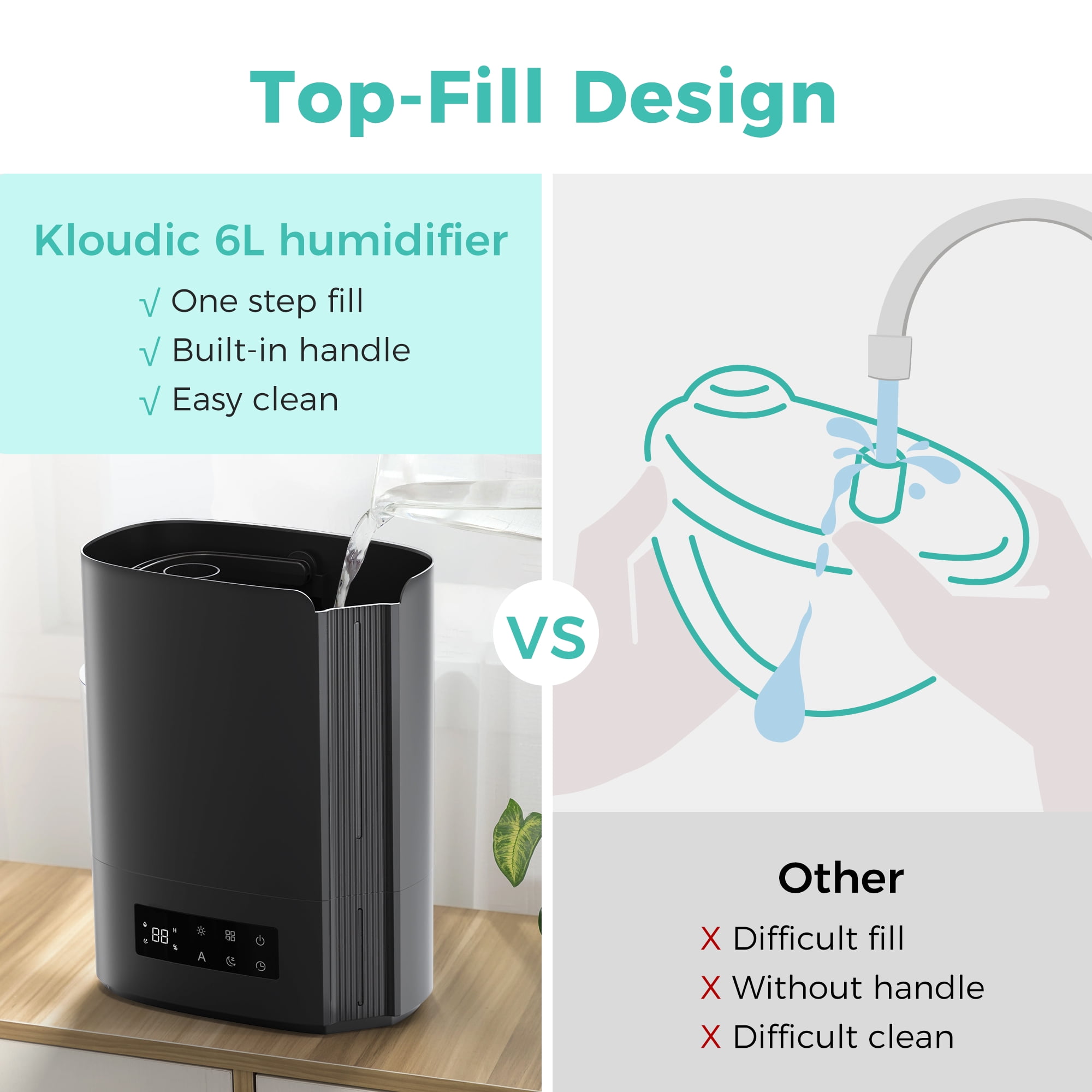 KLOUDIC Top-Fill 6L Cool Mist Large Humidifier for Home Air Vaporizer with Humidistat and Timer