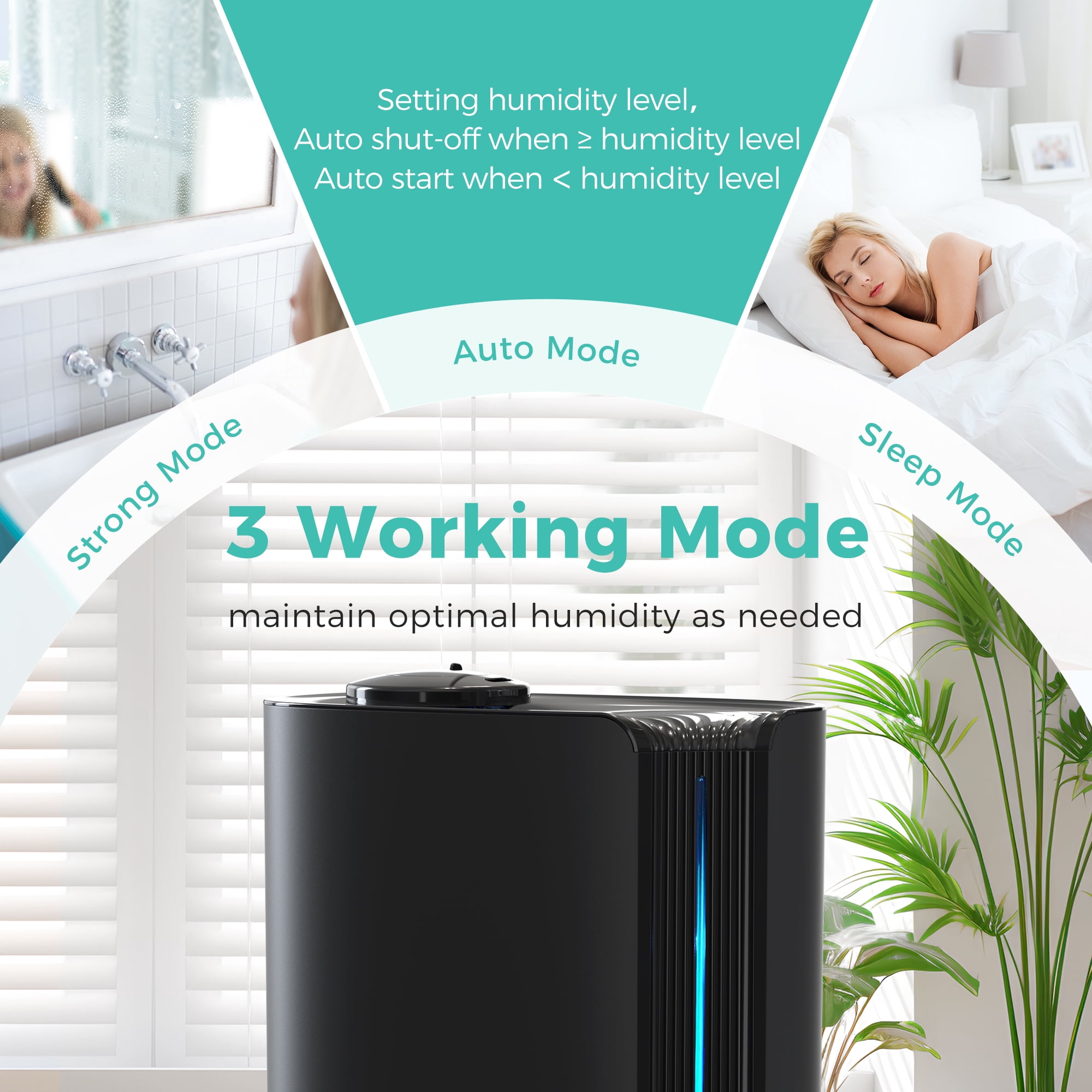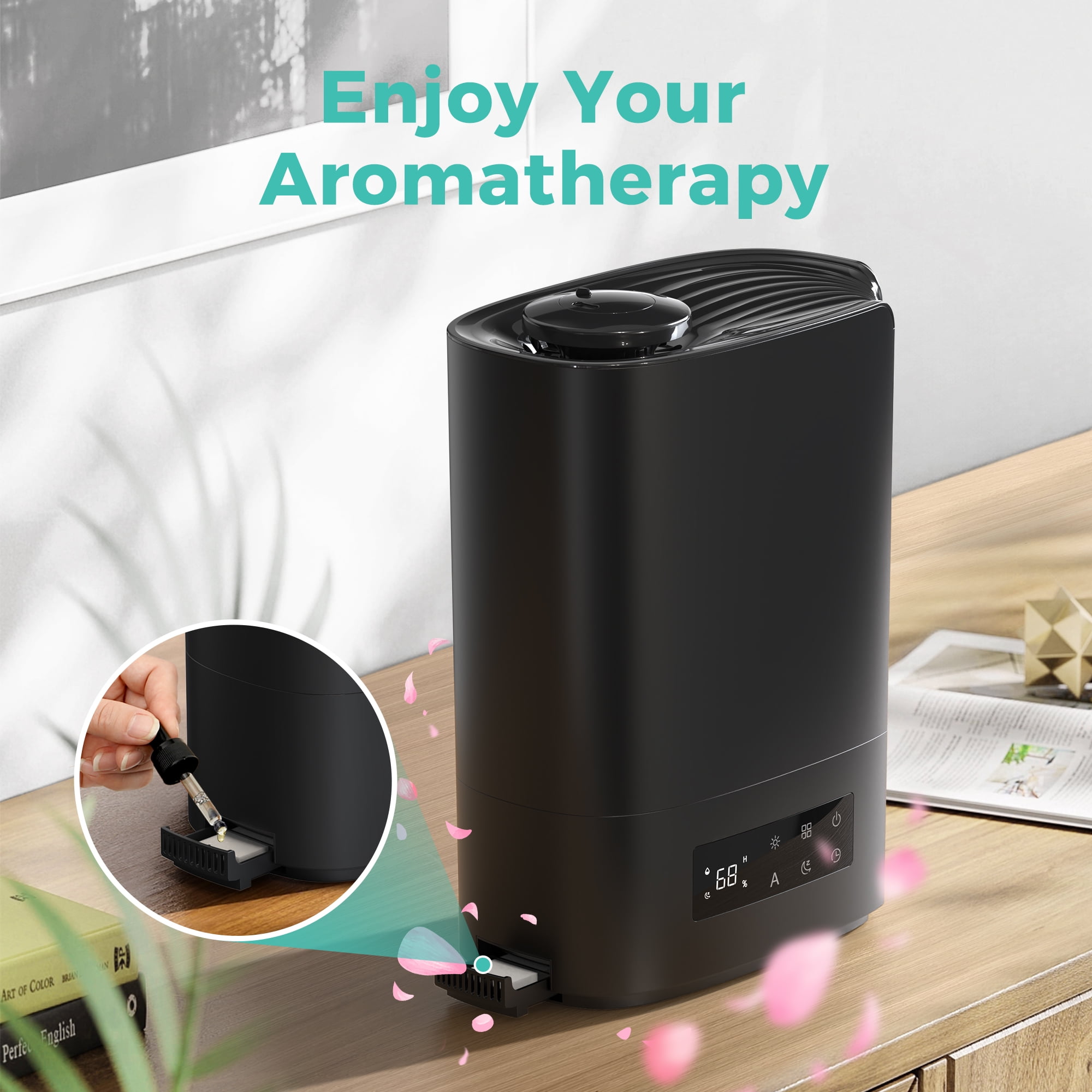 KLOUDIC Large Cool Mist Humidifier for Large Home- 6L(1.6gal) large capacity allows this humidifier to work for a long period of time(Max 60h) in a low-speed mode. In sleep mode, our dehumidifier for bedroom works at the 25dB ultra-quiet noise level which will not disturb your sound sleep. This safe humidifier can automatically shutoff when run out of water. It’s safe to use in baby room.The modern colorful night light is perfect for building a sweet atmosphere in bedroom. Easy to change color or switch off. It’s convenient to check the volume of water at a glance. Now you can adjust the humidity of your room with the help of this Smart Humidistat Humidifier, which allows you to set the desired humidity level from 55% to 90% RH, and the humidifier starts to work for the setting. This large humidifier with a separate built-in essential oil tray, allows you to add your favorite aroma into the cool mist, making a fancy living environment, relaxing your mind when resting or doing Yoga. (Note: the essential oil is not included)