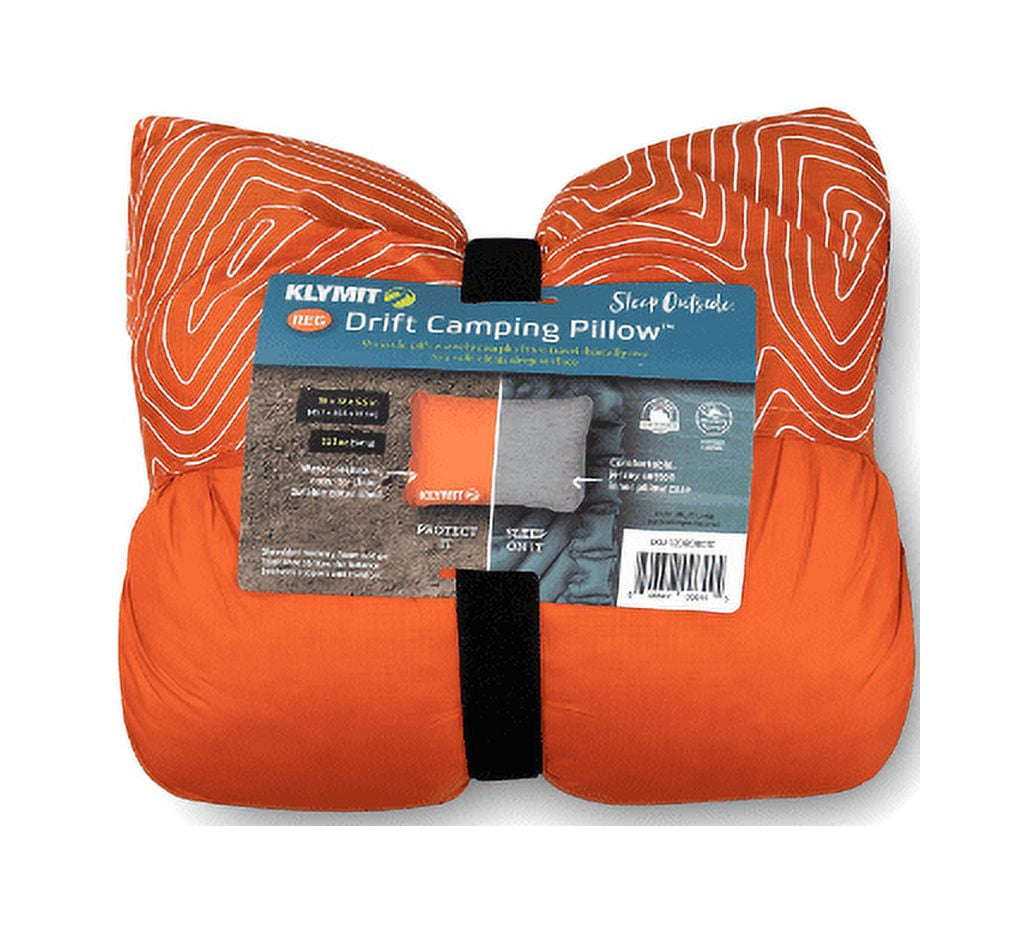 Klymit’s Drift Camp Outdoor Camping Pillow, Large (23″x16″), Orange, is a versatile, shredded memory foam pillow that strikes the perfect balance between support and comfort. The pillow features a durable, easy-to-clean, water resistant outer shell for travel. When it is time to go to sleep, the pillow morphs from travel-friendly use to a soft jersey cotton pillow case.
