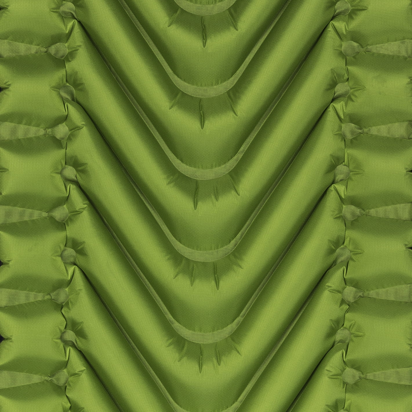 Klymit Static V2 Sleeping Pad, 72″ x 23 ” x 2.5″, Green features our patented V-shaped Body Mapping Technology that delivers support and comfort no matter how you sleep – on your side, stomach or back. Side Rails, integrated into the patterning and construction also provide a secure, comfortable sleep by centering you on the pad and inhibiting air movement while tossing and turning. Unlike traditional pads that flatten the bag’s fill, the Deep Weld Patterning creates expansion zones that allow your bag to fully loft beneath you for improved thermal comfort.