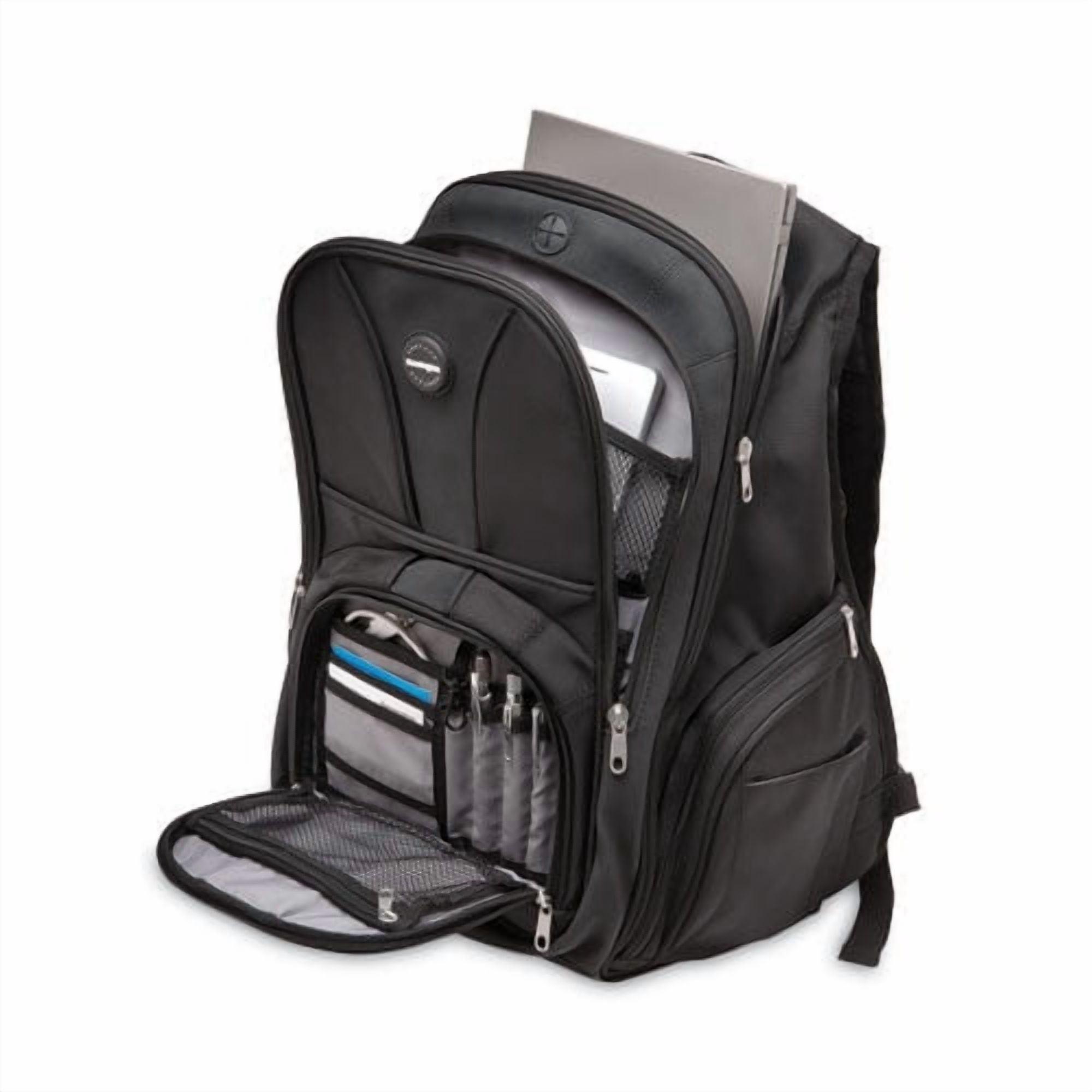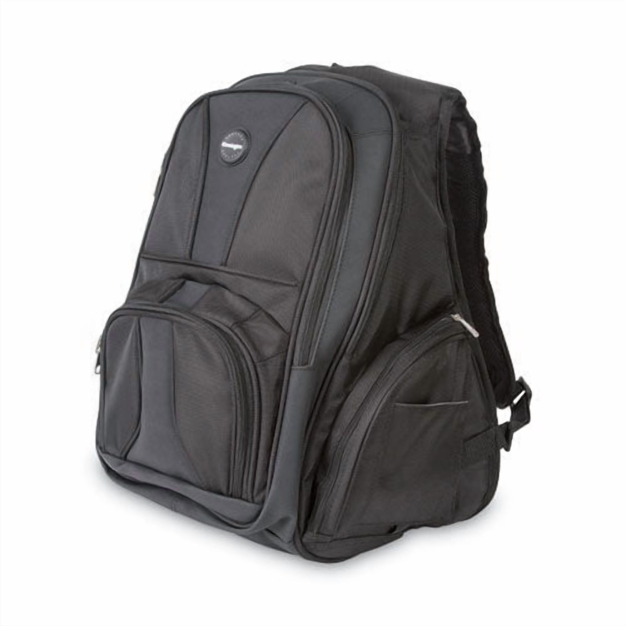 Sold as 1 Each. Backpack is perfect for carrying all of your supplies. One large compartment, SnugFit laptop compartment: 15.8″H x 11.5″W x 1.9″D. Lifetime manufacturer limited warranty. Solid black backpack made of 1680 denier ballistic nylon. Unisex backpack is convenient and comfortable for everyday use. Designed to fit a range of laptops with screens up to 17″. Backpack has front pocket to make organizing easy and side pockets for bottle, phone, and accessories. Backpack size: X-Large. Comes with padded, contoured shoulder straps and handle that doubles as strap to hang case from wheeled bag.