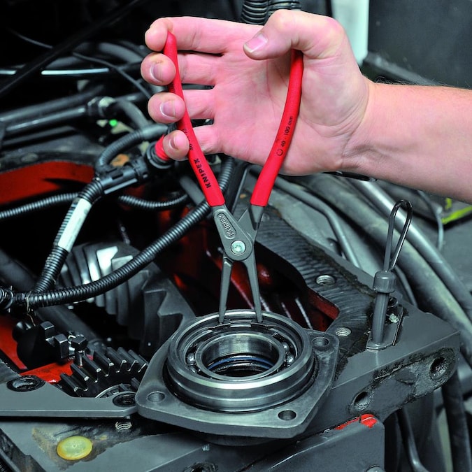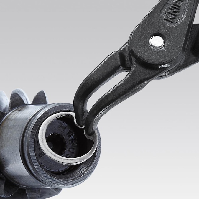 Knipex’s precision snap ring pliers feature spring steel tips that will last longer than typical snap ring pliers. Significant pressure is exerted on snap rings when they are put on or taken off. Sometimes, this pressure is transferred to the pliers tip which can subsequently cause breakage, especially when the tip is poorly constructed from pressed steel. Knipex’s snap ring pliers are forged from a solid piece of chrome vanadium steel. These pliers are much stronger, perform more consistently and will last much longer (up to 10X longer) than other pliers. The tips of the snap ring pliers feature a grooved surface that acts to hold the snap ring on the tips of the pliers more securely. These spring steel snap ring pliers are available in several diameter sizes with internal and external tips in a straight or 90° angled design. They are available individually or in popular sized sets.