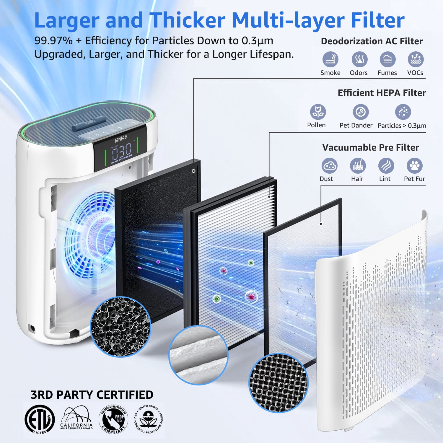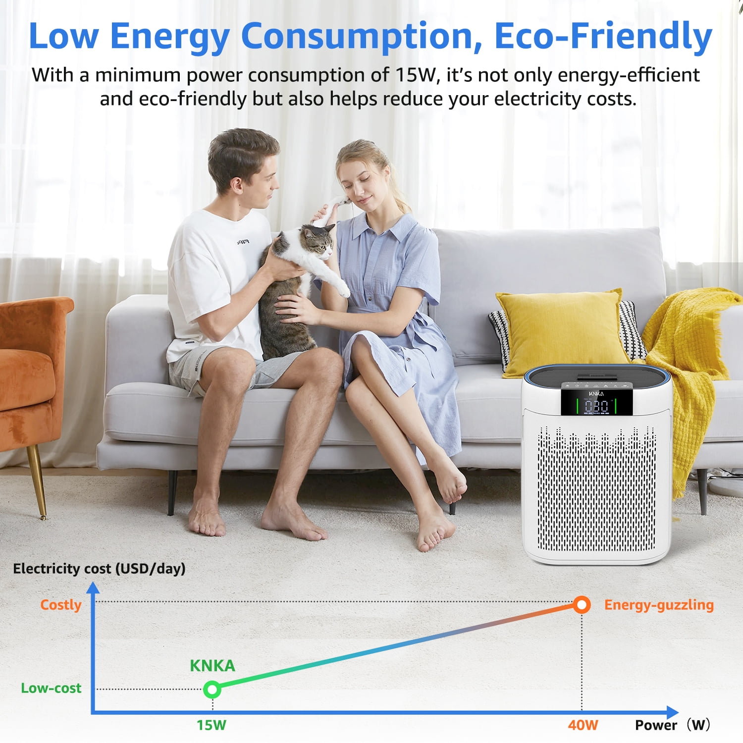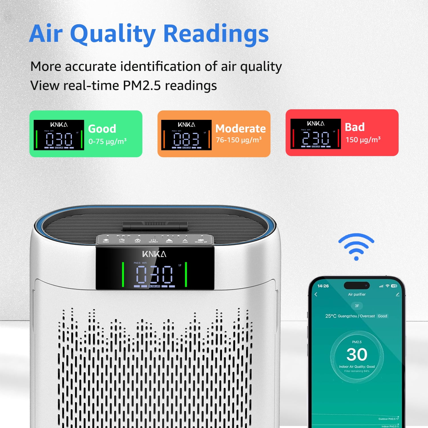 KNKA Air Purifier, HEPA Air Purifiers for Large Rooms up to 2500 Sq. ft., Air Cleaner with Air Quality Monitor, Smart WiFi, and Aromatherapy, for Allergies, Pets, Odors, Dust, Pollen, and Smoke