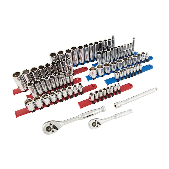 - Sockets feature laser-etched size callouts and are color-coded for easy identification between SAE (red) and metric (blue) sizes