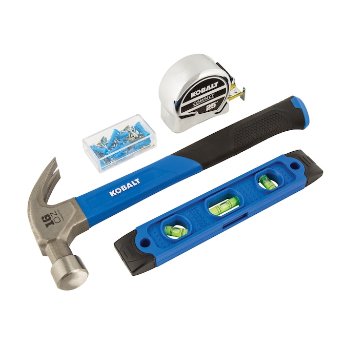- Other household tools included are a picture hanging kit, mini wire brush, putty knife, cable ties, scissors wire stripper, hammer, tape measure, level and utility knife with replacement blades