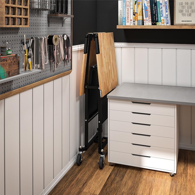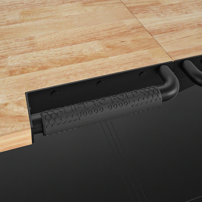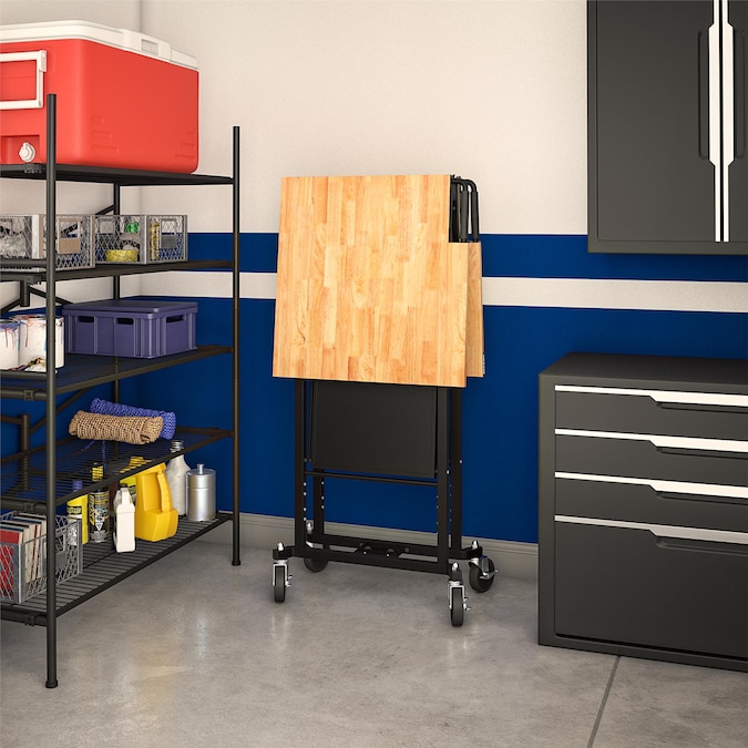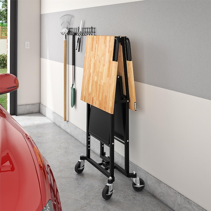 Take this folding portable workbench anywhere the work is. When your work is done, simply fold and store away. Made with industrial-strength steel, this utility table has a weight capacity of 400 pounds on the hard wood top shelf and 300 pounds on the bottom shelf. The four locking casters allow you to keep the workbench in place while you work. It folds in seconds, saving you time and storage space. With a large working surface and a place to store your tools, this versatile workbench is ready to handle any DIY project.