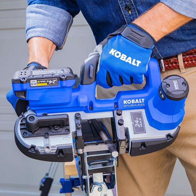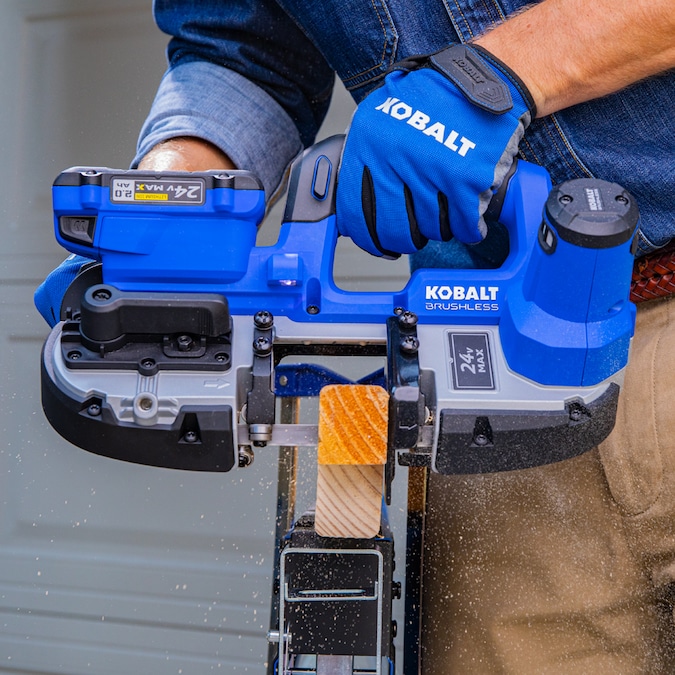 The Kobalt 24V Max portable band saw is lightweight, compact, and equipped with a brushless motor to power through the toughest applications. Designed with a 2.5-inch cut capacity and up to 550 surface feet per minute cutting speed to tackle your most demanding jobs. It is compatible with all Kobalt 24-volt batteries and chargers (sold separately), and also comes with a 5-year limited warranty.