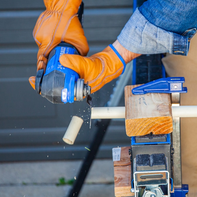 Whether you need a tool for sanding or cutting, the Kobalt 24v Multi-Tool features new innovative technology that highly reduces the vibration and noise for the ultimate user experience. The variable speed trigger offers ultimate control to start cuts at a low speed and easily accelerate for fast cutting. The Lock On feature eliminates the need to have a finger on the trigger in tight spaces or hard to reach areas. The powerful and efficient brushless motor delivers the strength to cut through the hardest materials with up to 18,000 oscillations per minute while providing the runtime to get the job complete. The tool-free blade changes allows the user to quickly change blades to complete the next task on their to-do list. The center pin can be removed to easily and quickly adapt to Starlock blades. The kit includes (3) plunge cut blades, (1) scraper blade, (1) carbide grout removal blade, (1) flush-cut blade, (1) sanding pad along with (9) 60/120/180 grit sand paper, and a soft bag to carry it all in! It is compatible with all Kobalt 24-volt batteries and chargers , and also comes with a 5-year tool limited warranty and 3 year battery and charger limited warranty.
